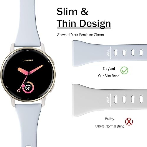 Slim Silicone Watch Bands Compatible with Garmin Vivoactive 6/5/3/3 Music, 20Mm