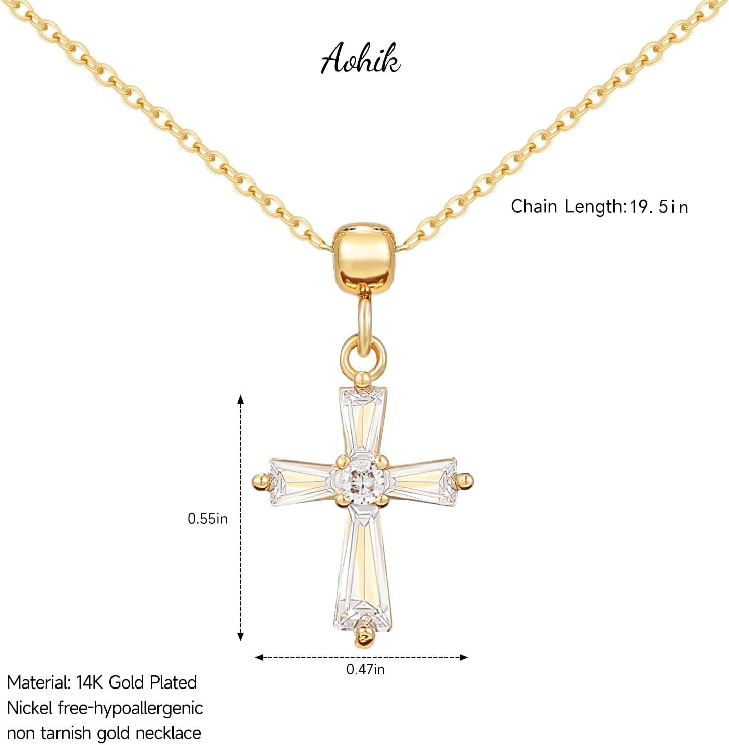 Dainty 14K Gold Choker Cross Charm Necklace for Women, Cross Gold Pendant Neckla