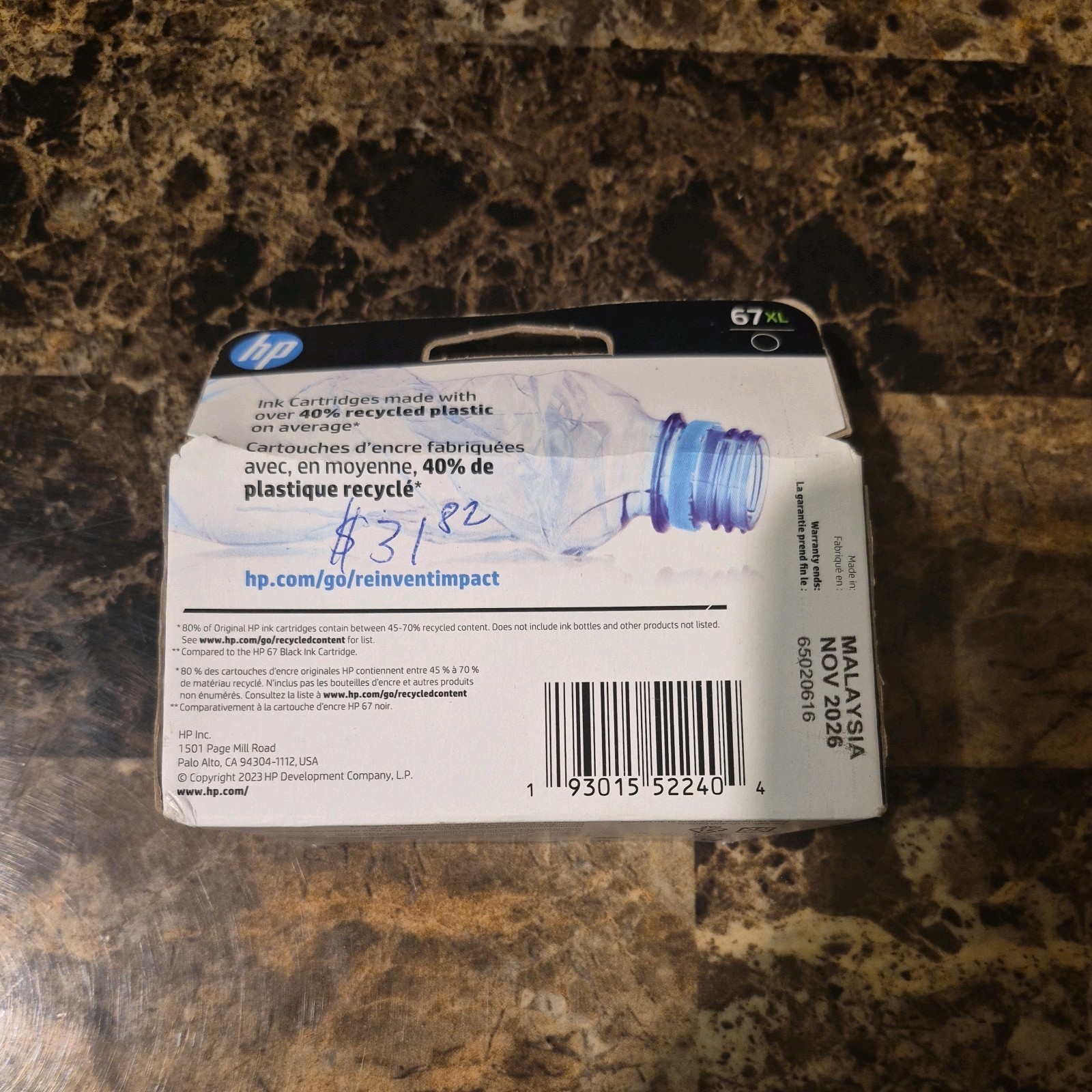 New HP 67 XL Black Ink Cartridge Genuine Original New Sealed Exp 11/2026