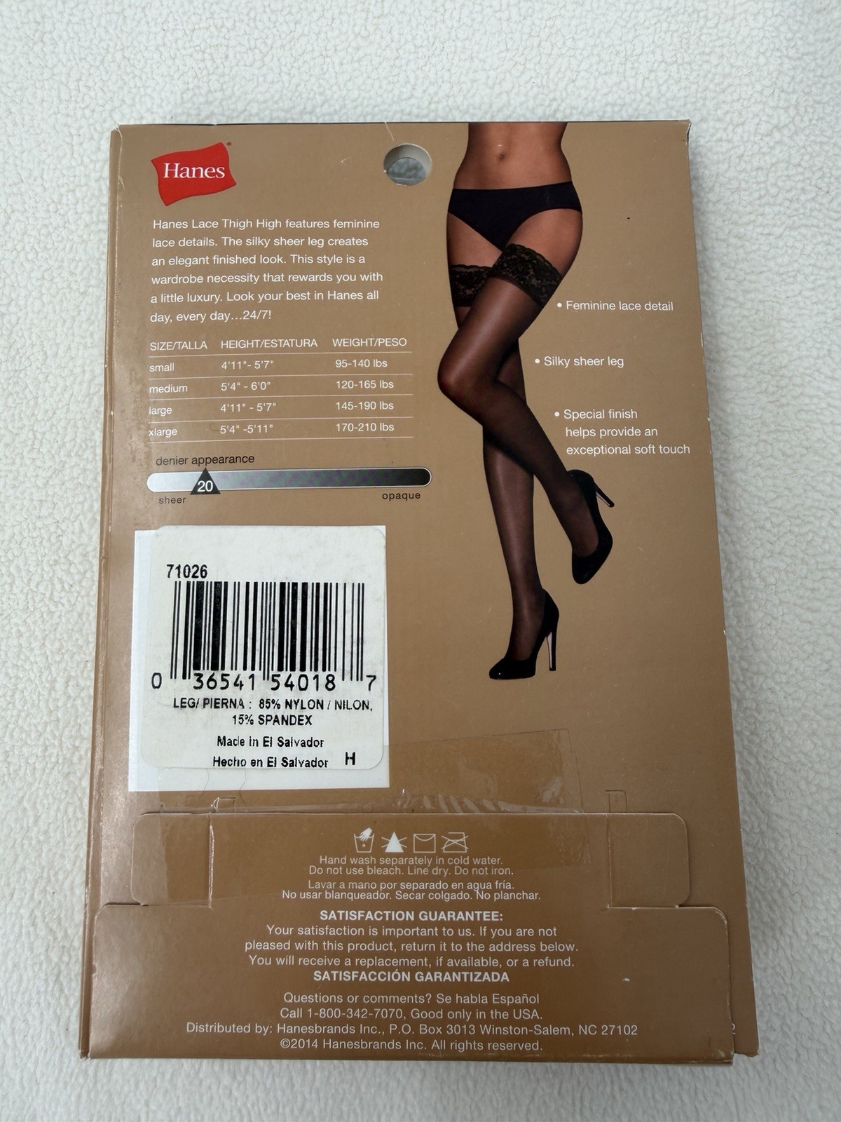 Sealed Hanes Lace Thigh High Pantyhose 54018 Size Small Jet Black Nylons NEW