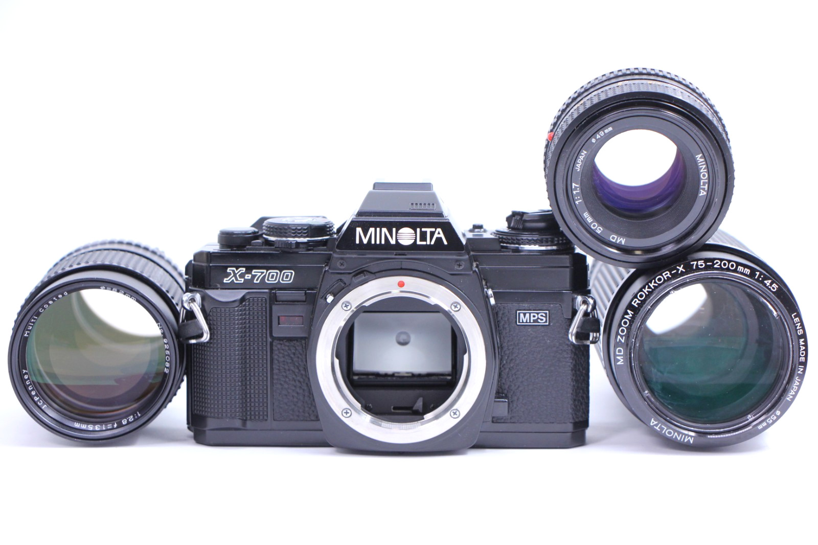 Minolta X-700 Film Camera MD 50mm f1.7 Rokkor-X 75-200mm 135mm F2.8 Flash Lot