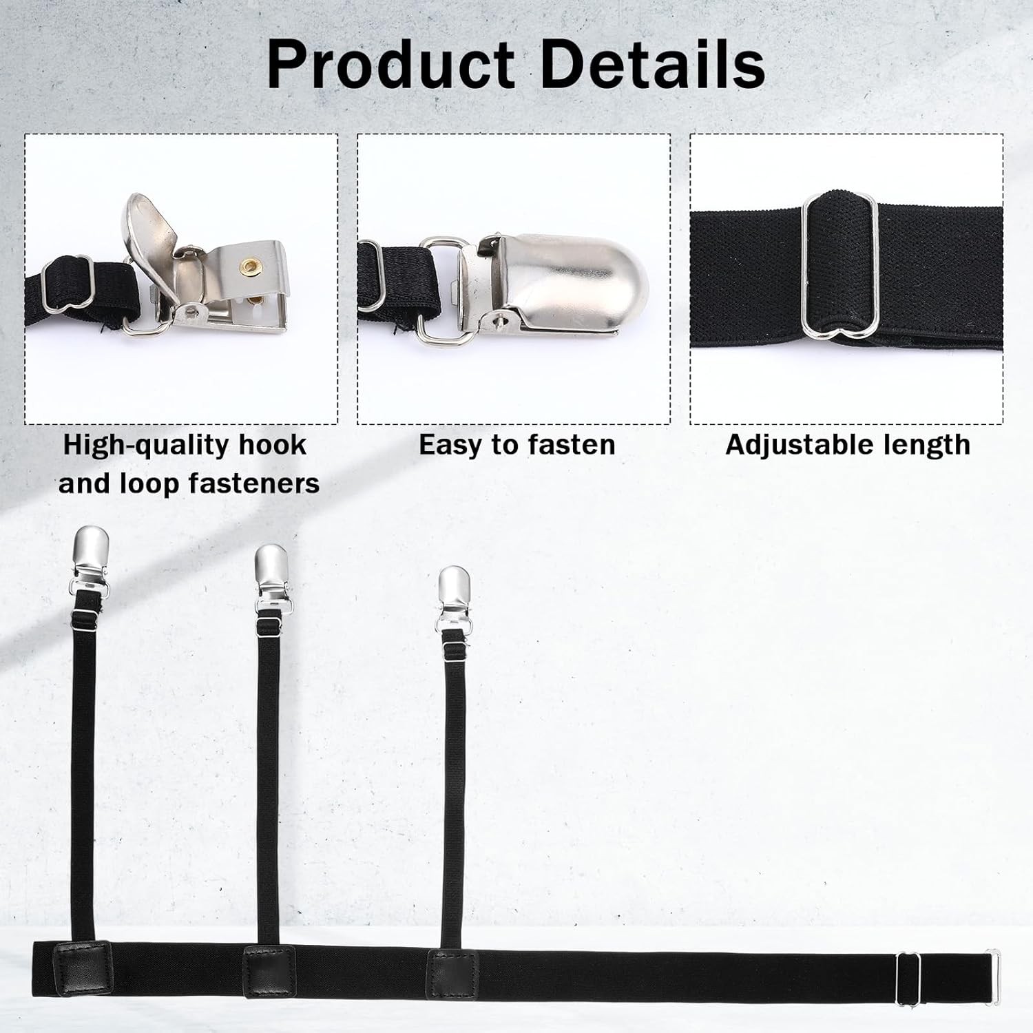 как выглядит Shirt Stays for Men, 2 Pcs Adjustable Elastic Shirt Garter With Non-Slip Clips, фото