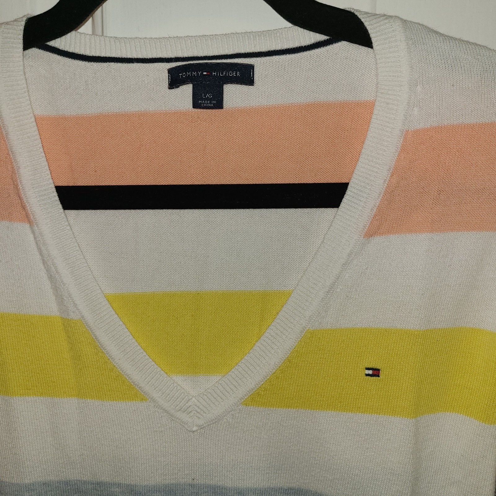 Tommy Hilfiger Multi-Color Striped Sweater Size Lg Vneck Preppy Rich Girl