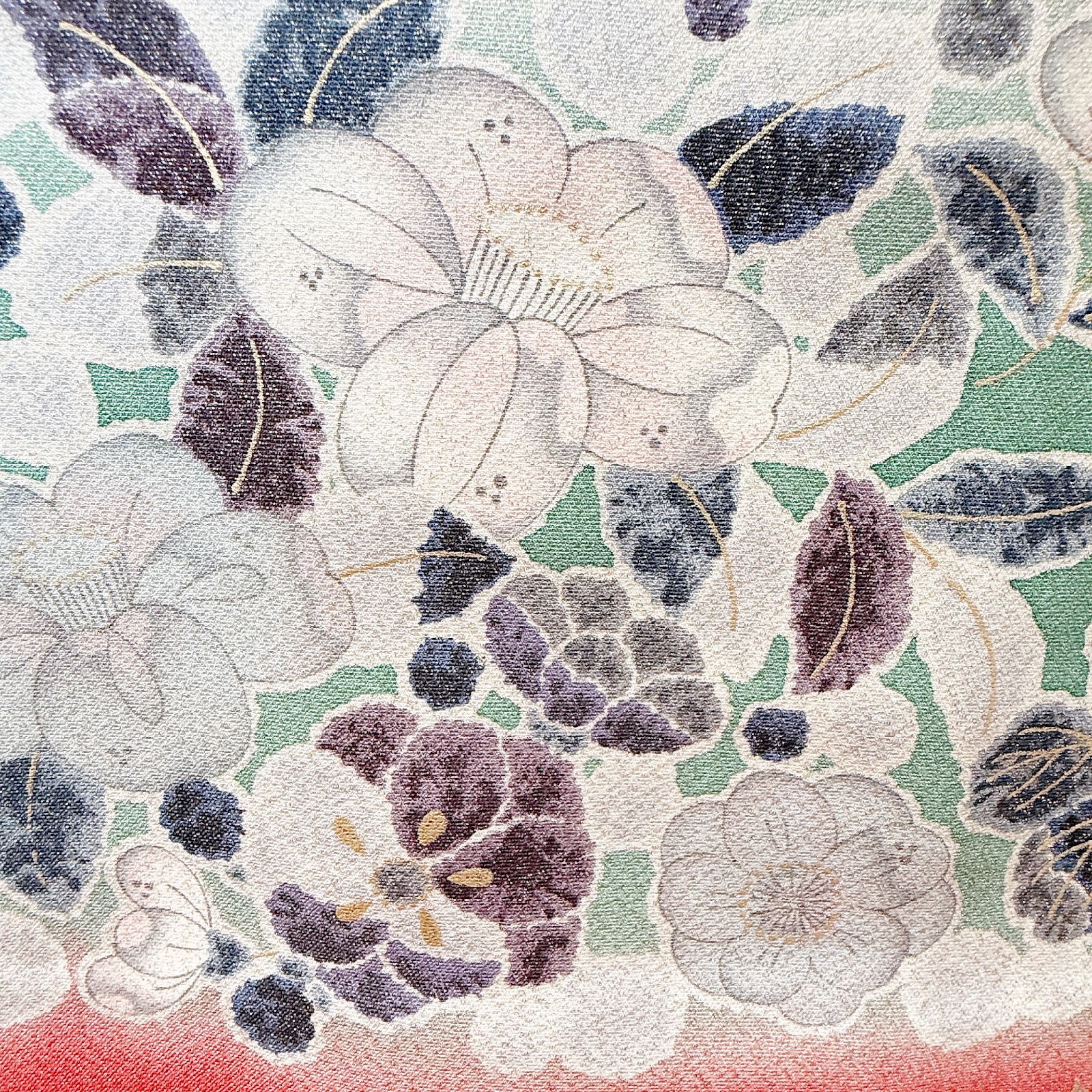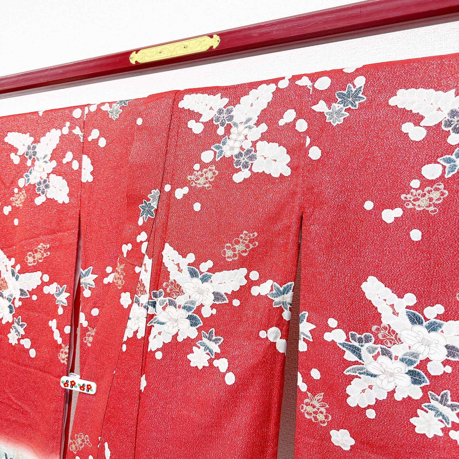 • Japanese Kimono 'FURISODE' Polyester/Red/Gold/Flower/Gorgeous/Length:155cm N1358