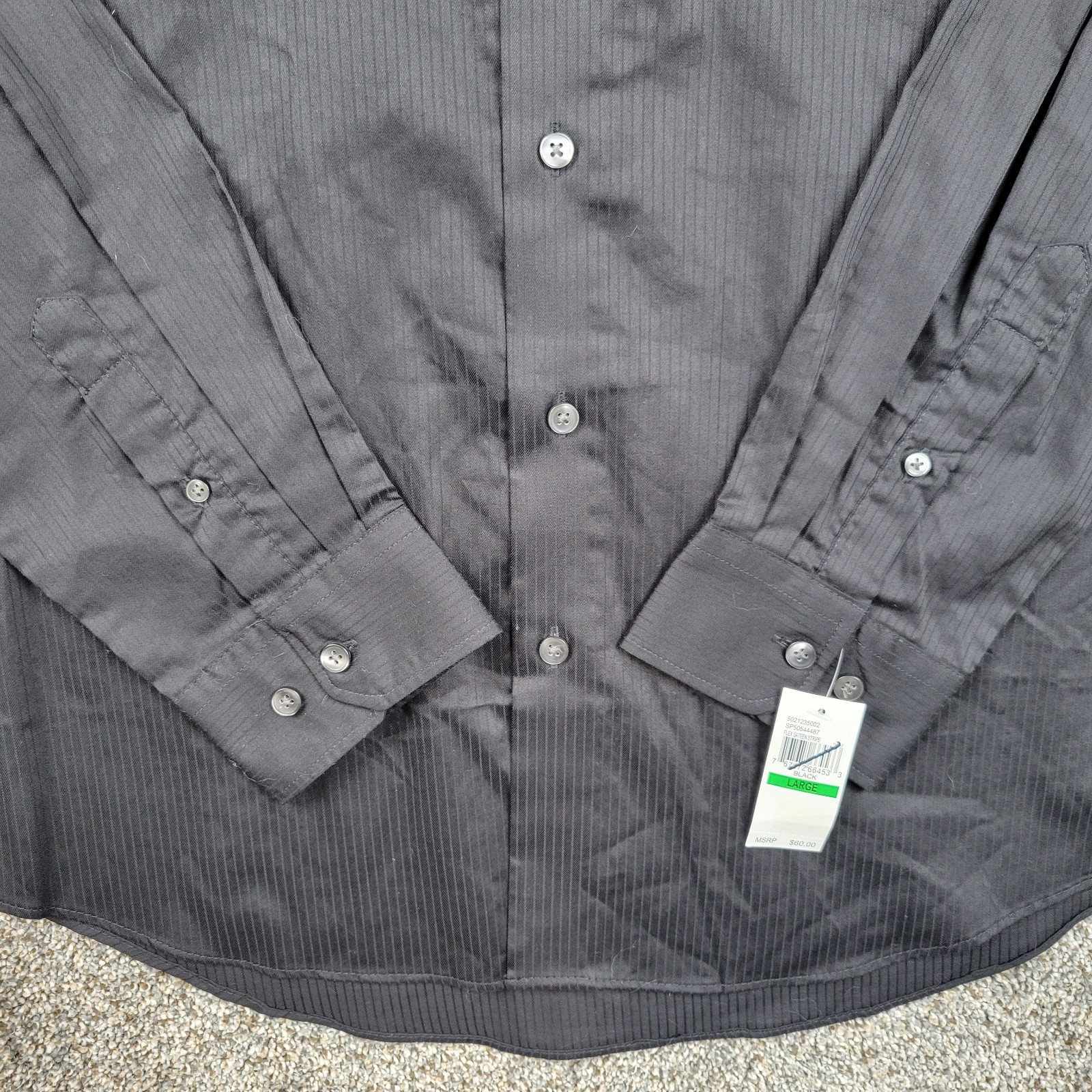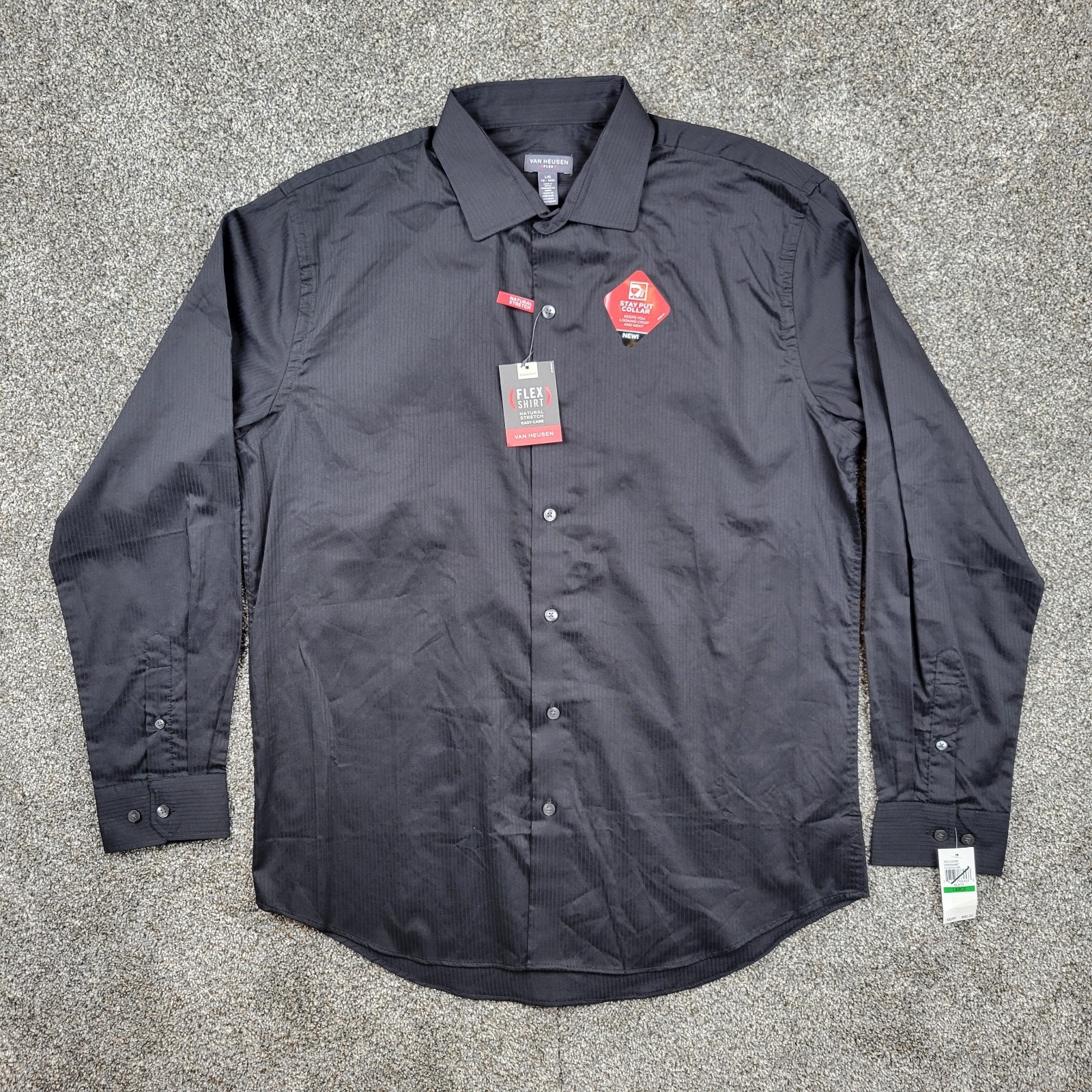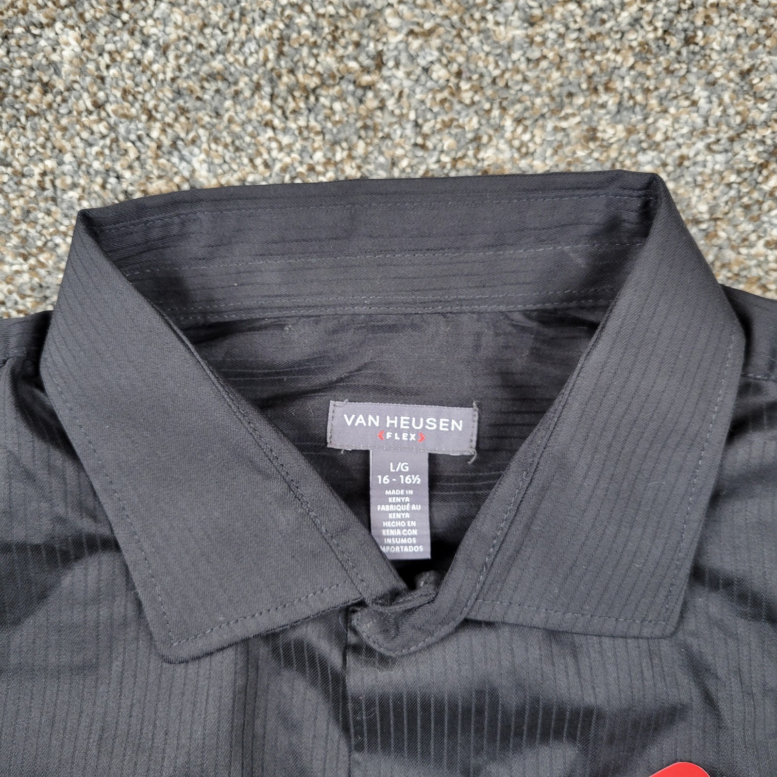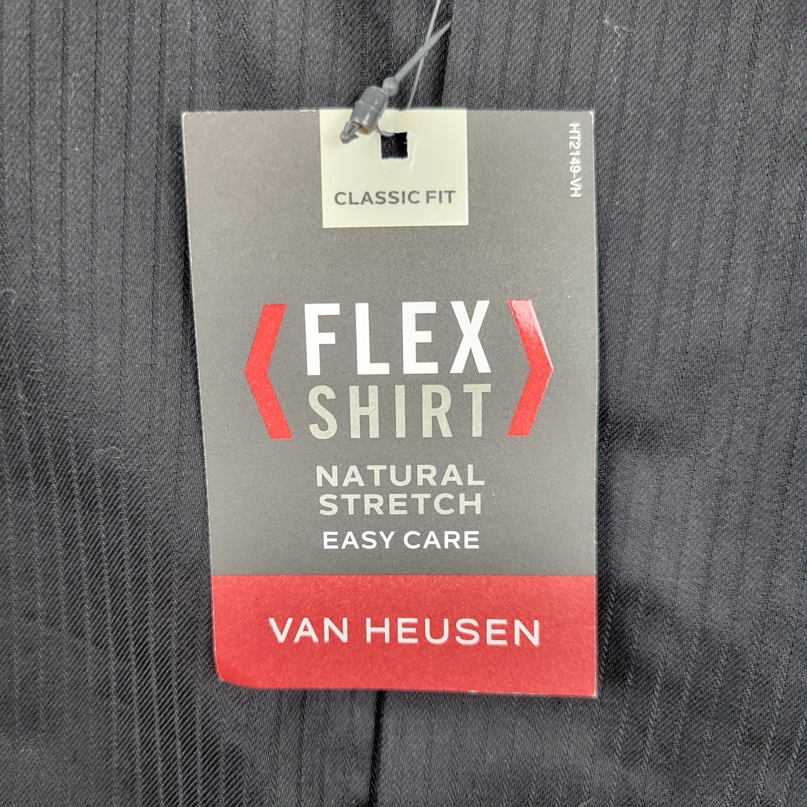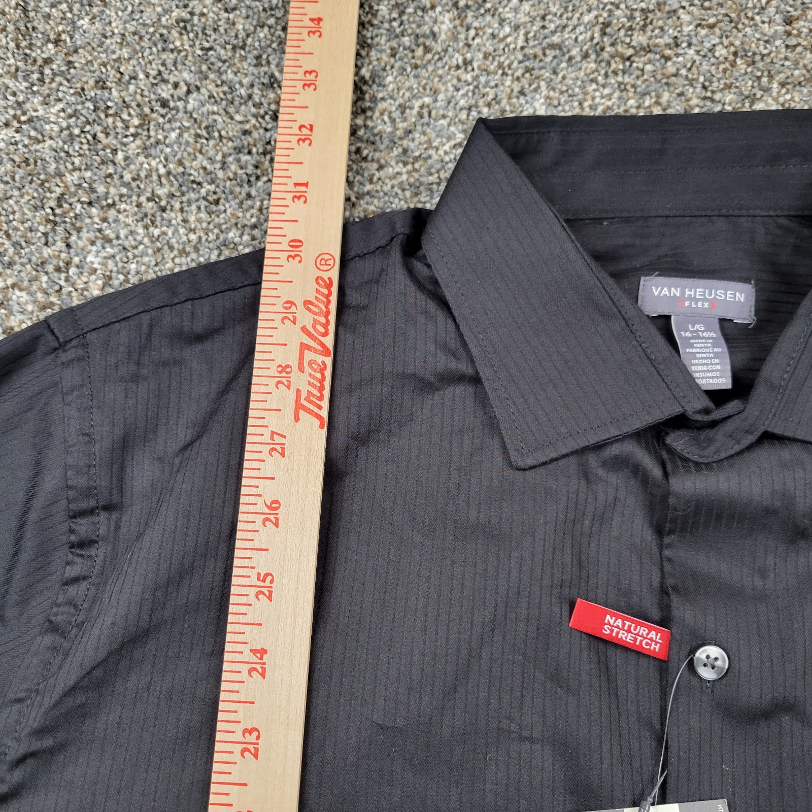 Van Heusen Flex Shirt Mens Large 16-16.5 Black Pinstripe Long Sleeve Dress NWT