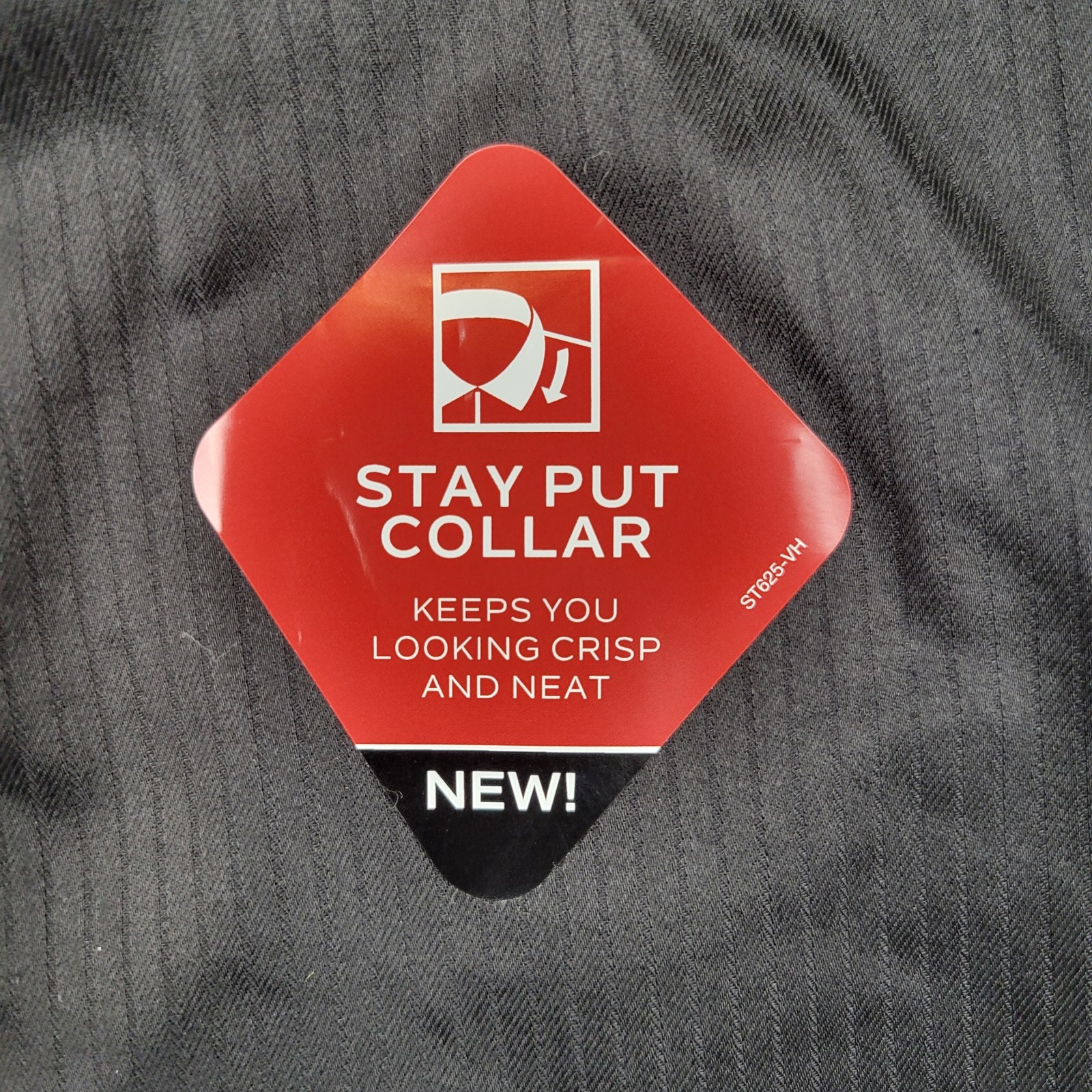 как выглядит Van Heusen Flex Shirt Mens Large 16-16.5 Black Pinstripe Long Sleeve Dress NWT фото