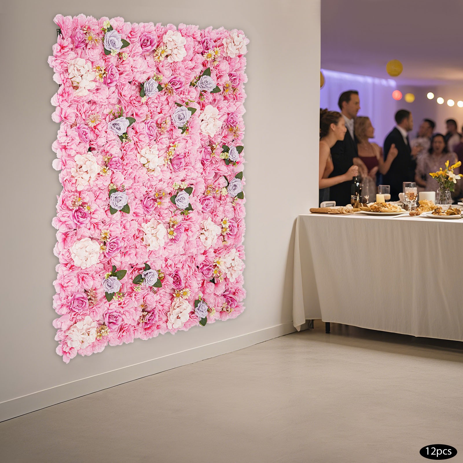 12 Pcs Artificial Flower Wall Panels, Artificial Flowers Wall Panel for Wedding