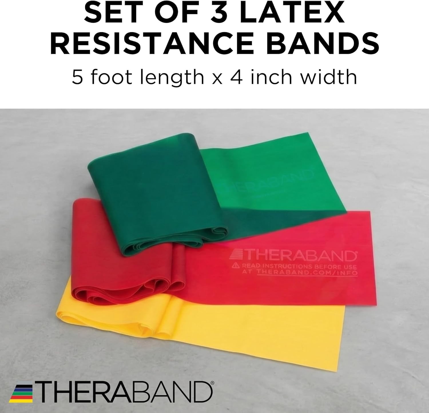 THERABAND Resistance Bands Set, Beginner Kit, Yellow, Red, Green, Latex Elastic