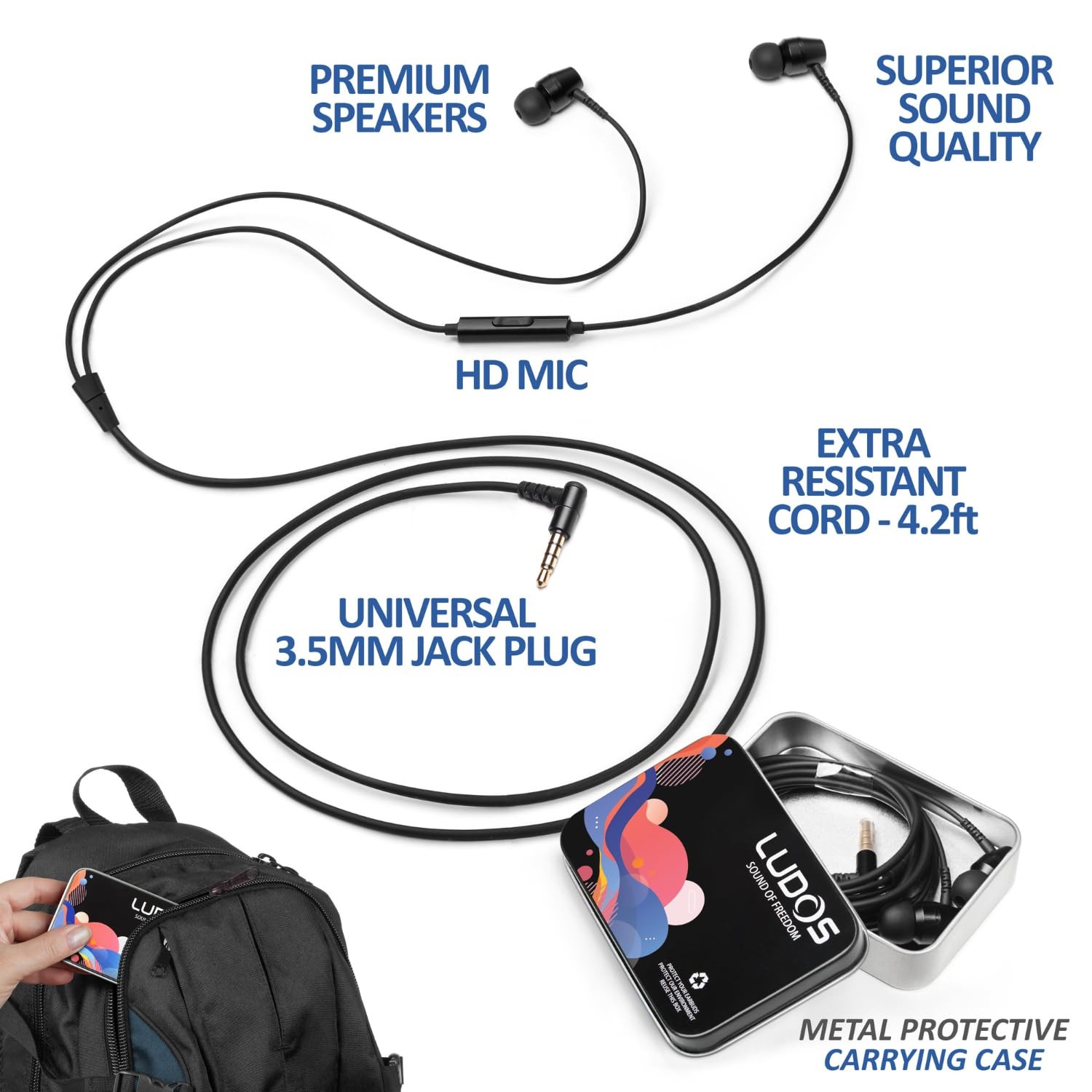 OMNITONE Wired Earbuds in-Ear Headphones, 5 Year Warranty, Earphones with Mic...