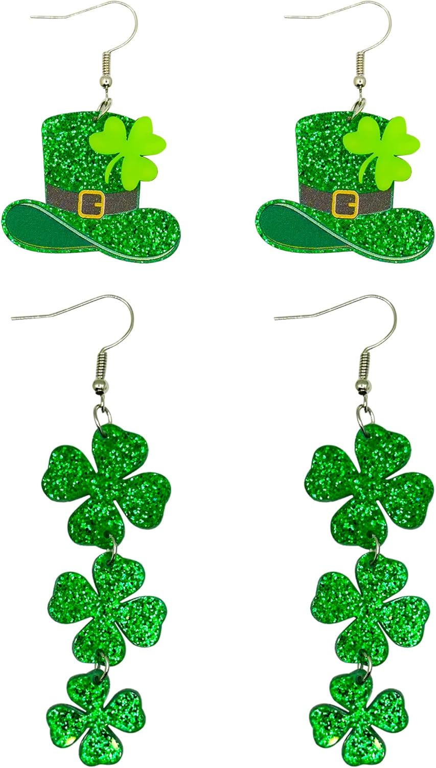 St Patricks Day Earrings Irish Green Hat Clover Dangle Earrings Shamrock Holiday