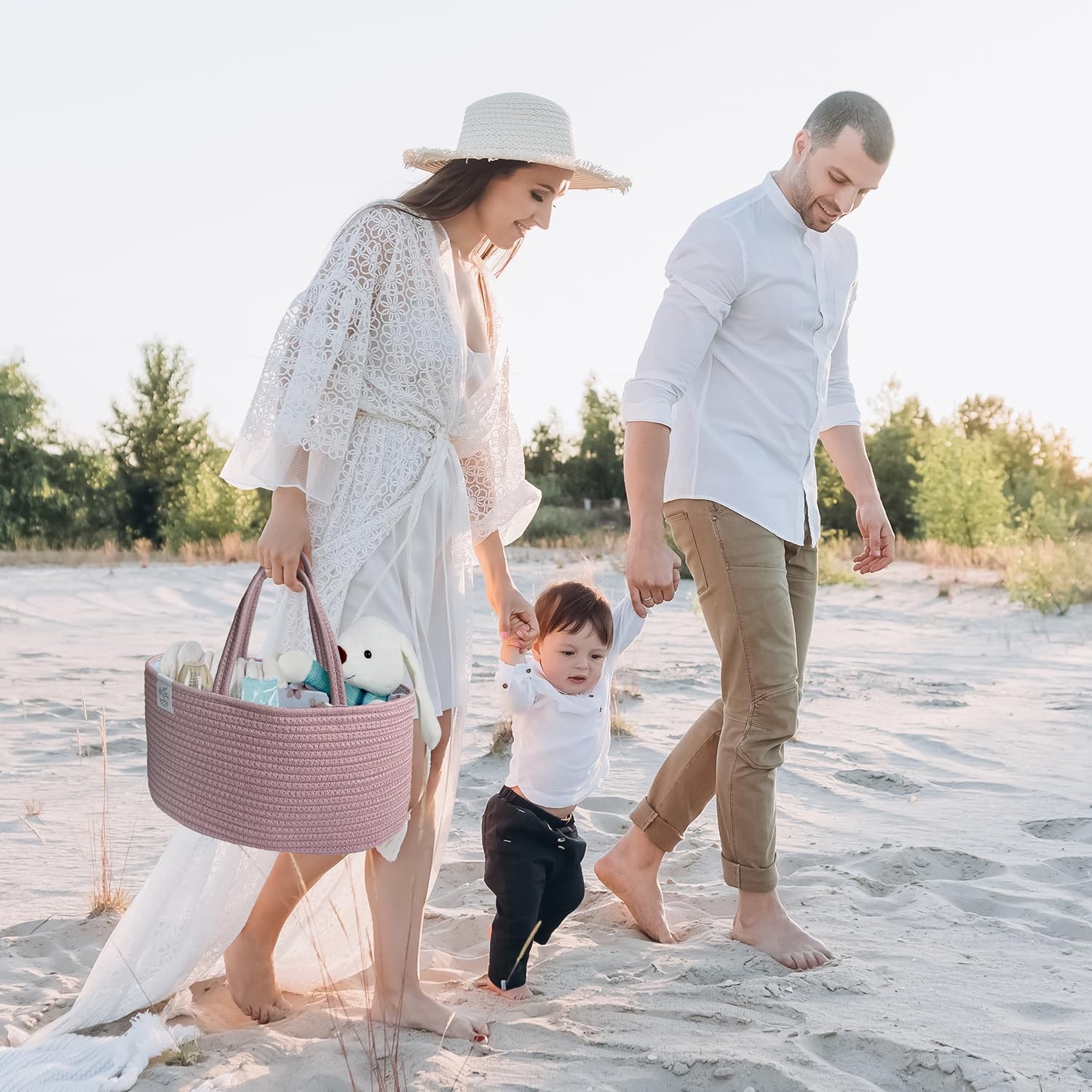 как выглядит KiddyCare Diaper Caddy Organizer for Baby Nursery Basket with Handle Lid Nursing фото