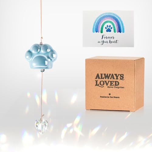 Included Components: Ceramic Paw Wind chime, Crystal Suncatcher, Sympathy Card
