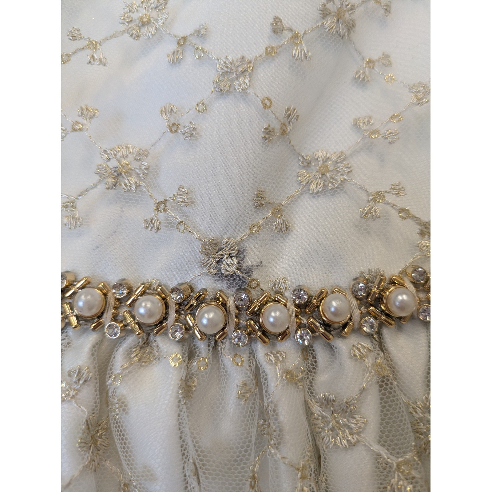 American Princess Kids Ivory Gold Floral Embroidered Tulle Formal Dress