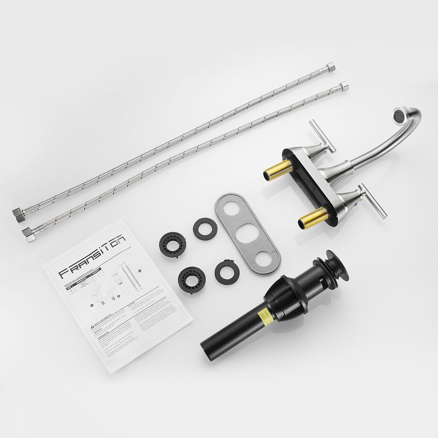 Bathroom Sink Faucet 4 Inch 2 Handle Centerset Brushed Nickel Lead-Free Modern B