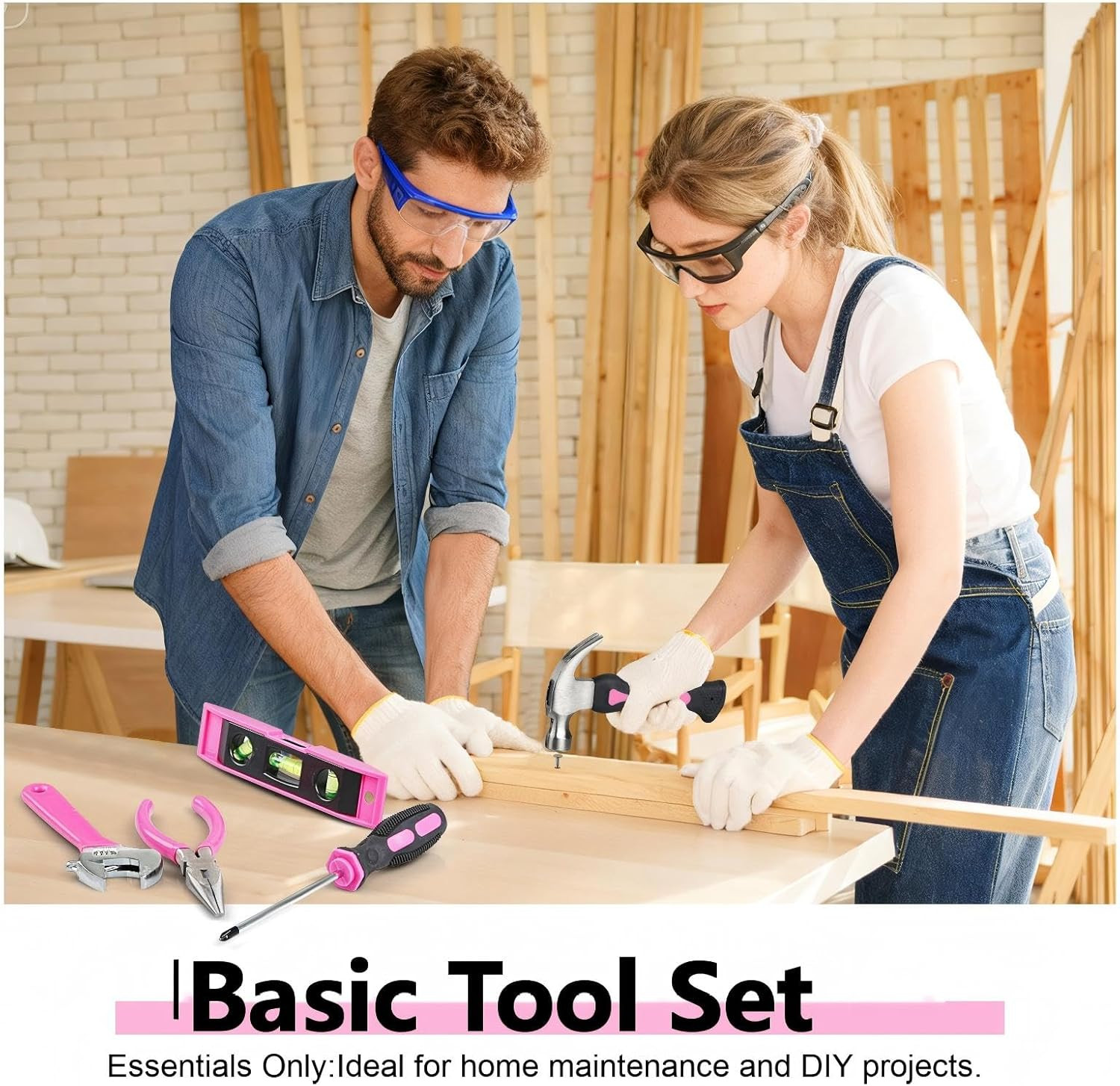 Pink Tool Set,Tool Bag for Women with Shoulder Strap,Basic Tool Kit,21Pcs,Tool P