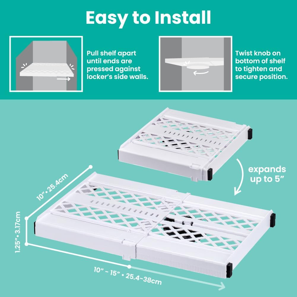 Adjust-A-Shelf Locker Shelf, Extends to Fit Your Locker, Easy to Use, Perfect fo