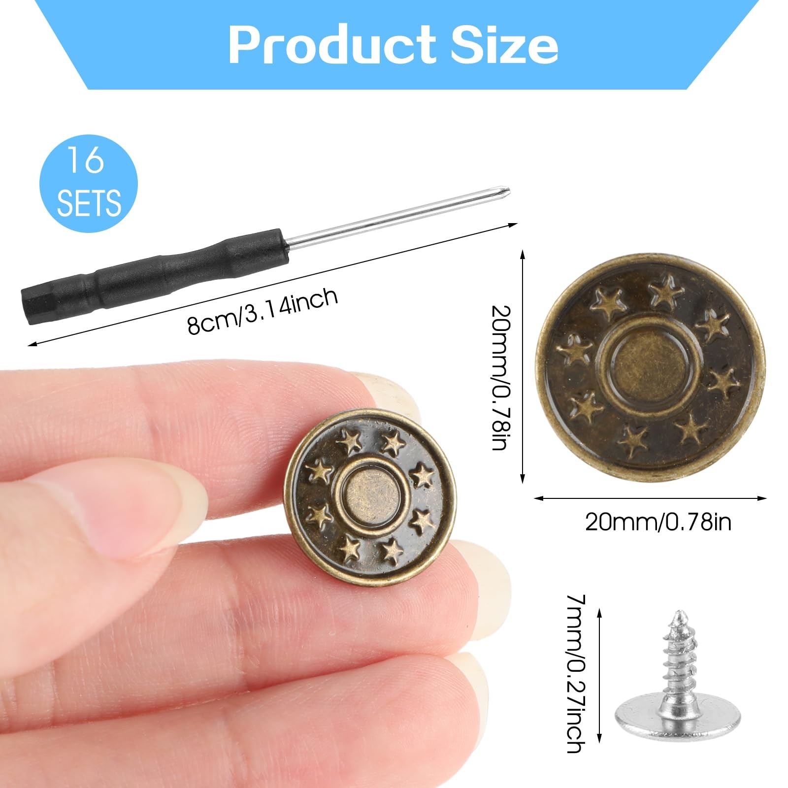 16 PCS Jeans Buttons, 20mm No Sew Jean Button Replacement for Loose Jeans Tro...