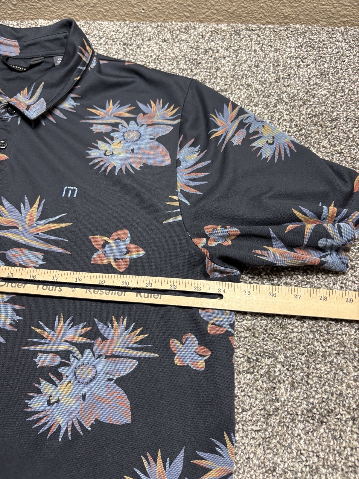 как выглядит Travis Mathew Polo Shirt Mens 2XL Black Floral Golf Performance Casual фото