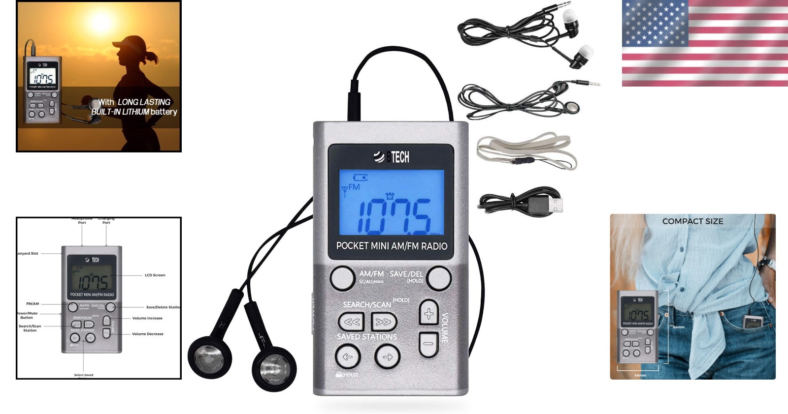 Особенности: Built-in Clock, Channel Presets, Lock Keypad, Rechargeable Battery, Compact Size, LCD Display, Portable Design, Stereo Audio Output, Multiple Headphone Styles