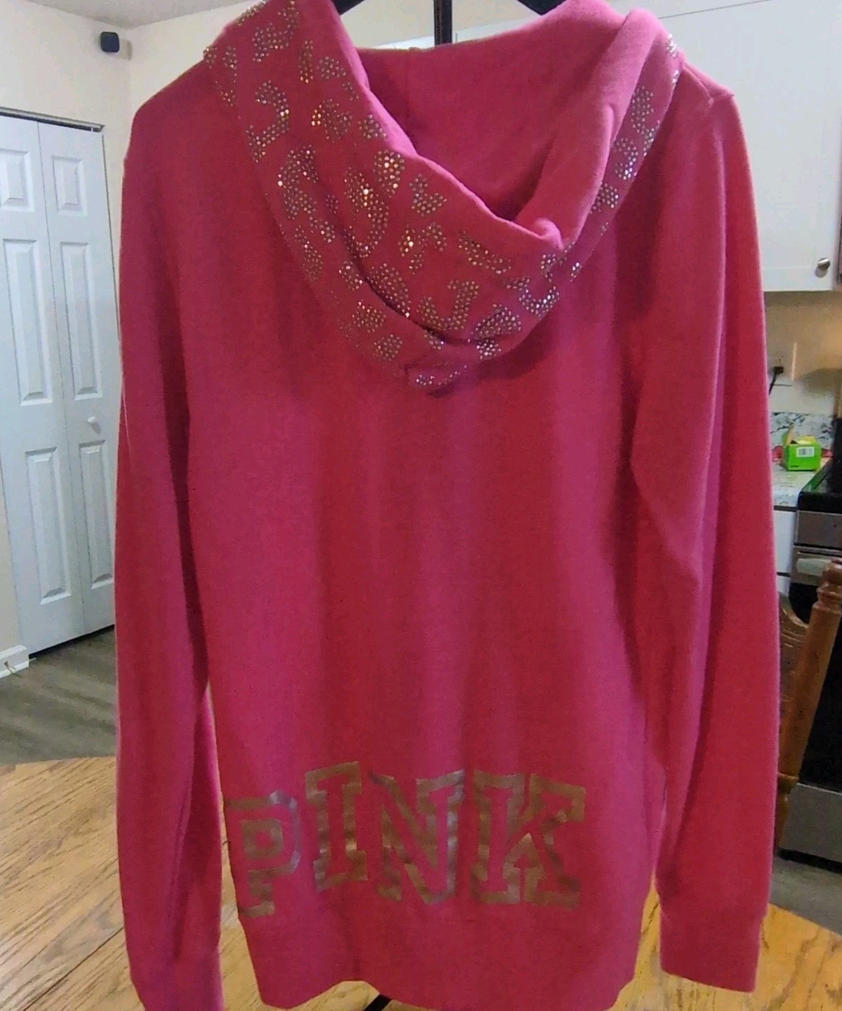 как выглядит Victoria Secret Pink Full Zip Rhinestone On Pocket And Hood Size Med 50 фото