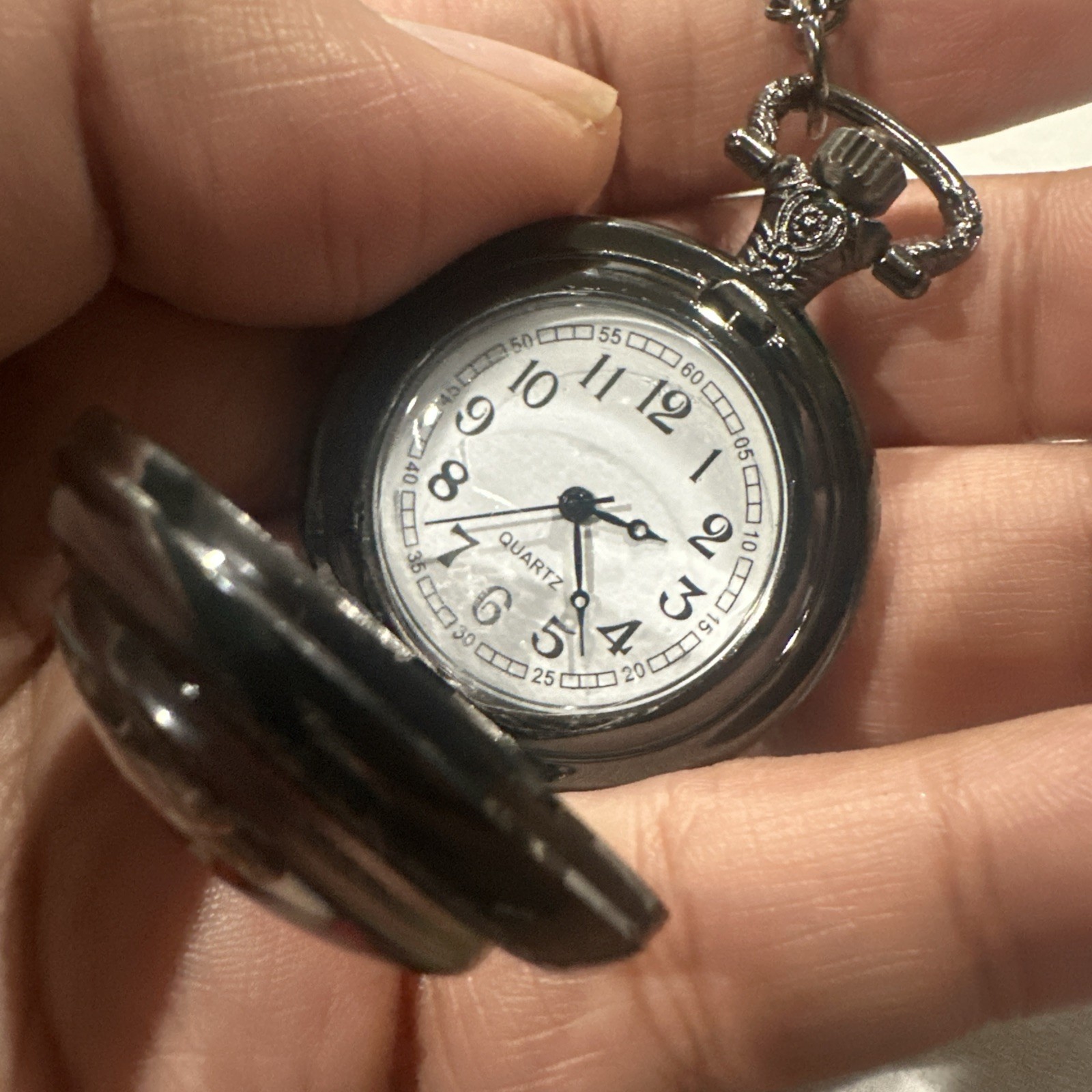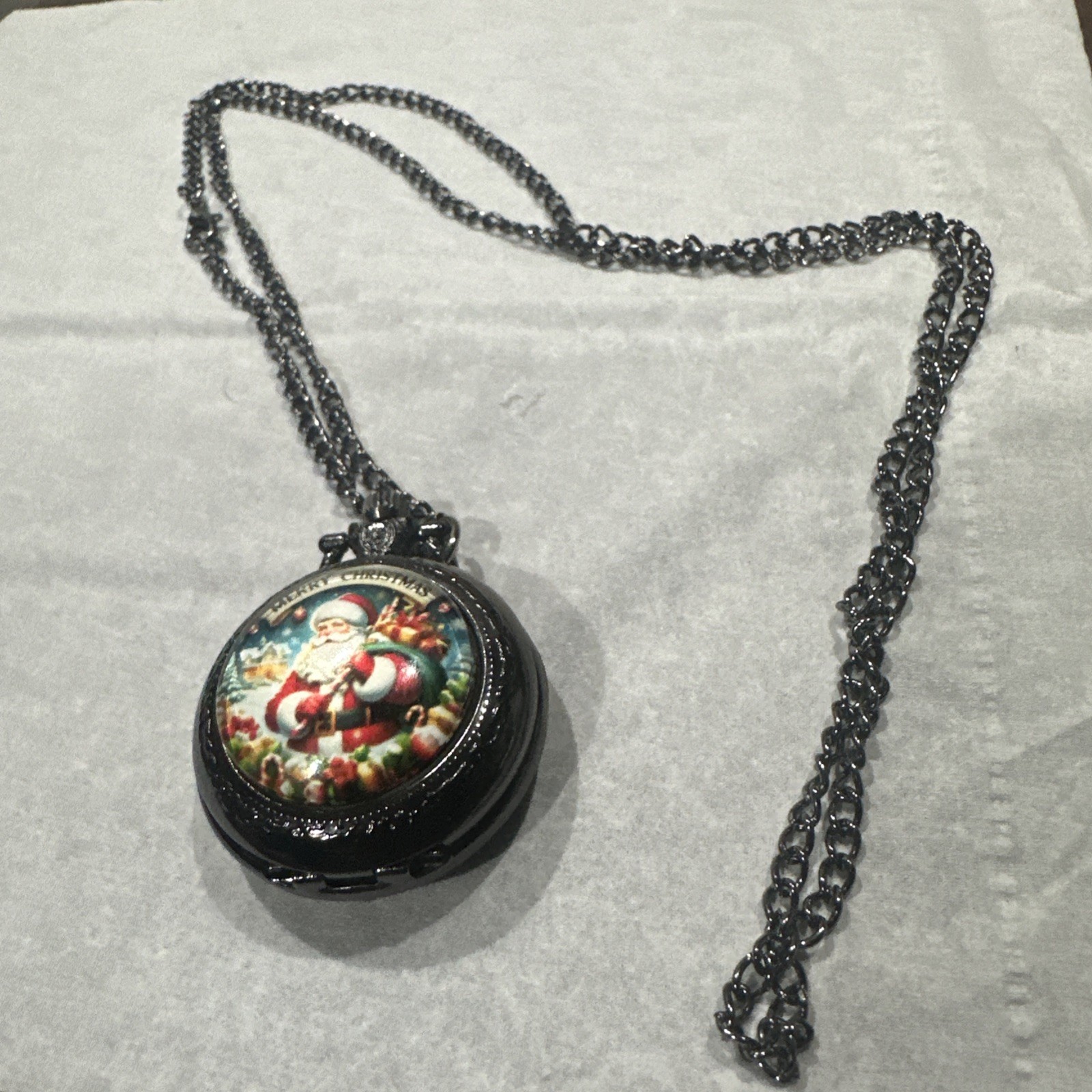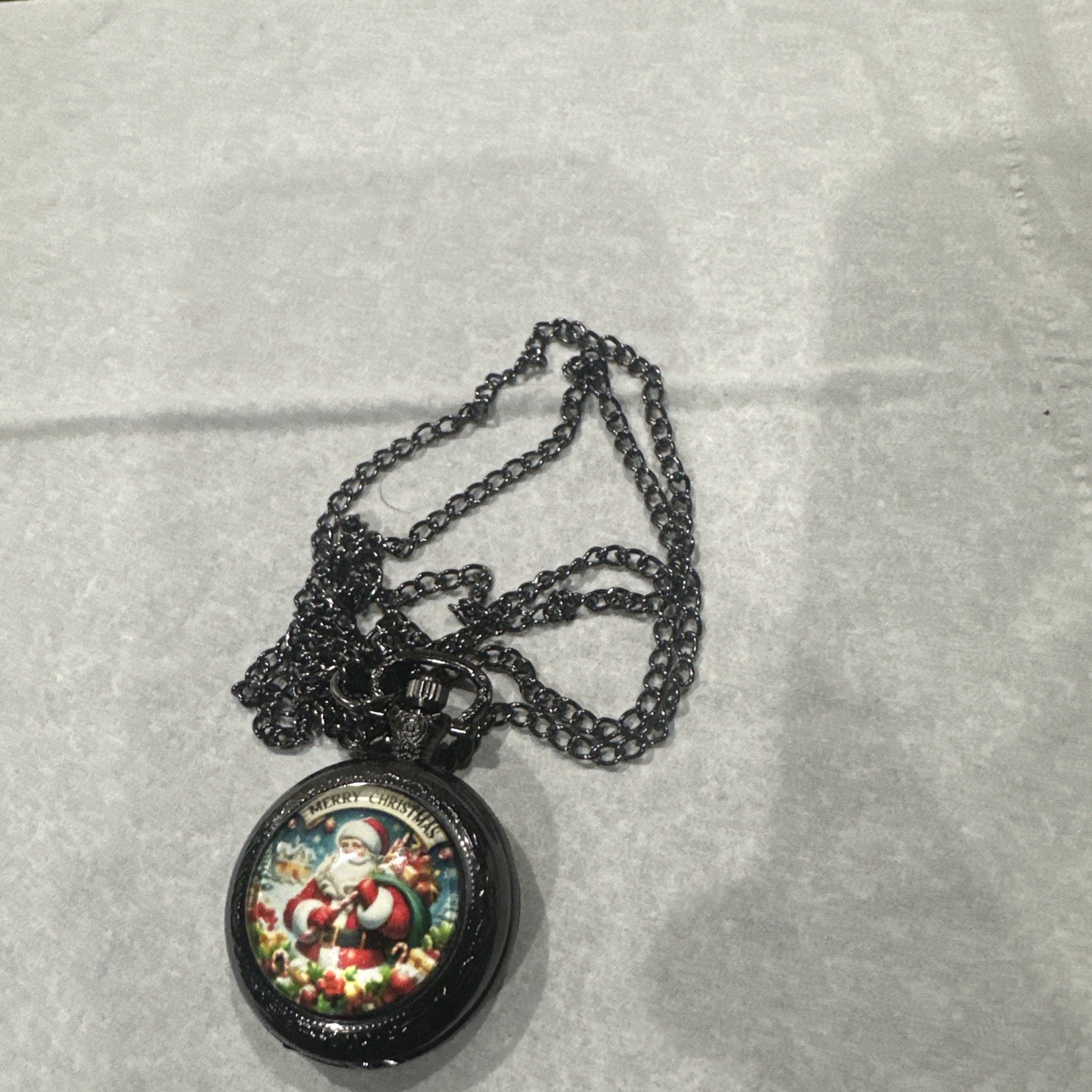 New Santa Claus Pocket Watch Design Black 36mm Quartz Christmas Holiday Gift USA