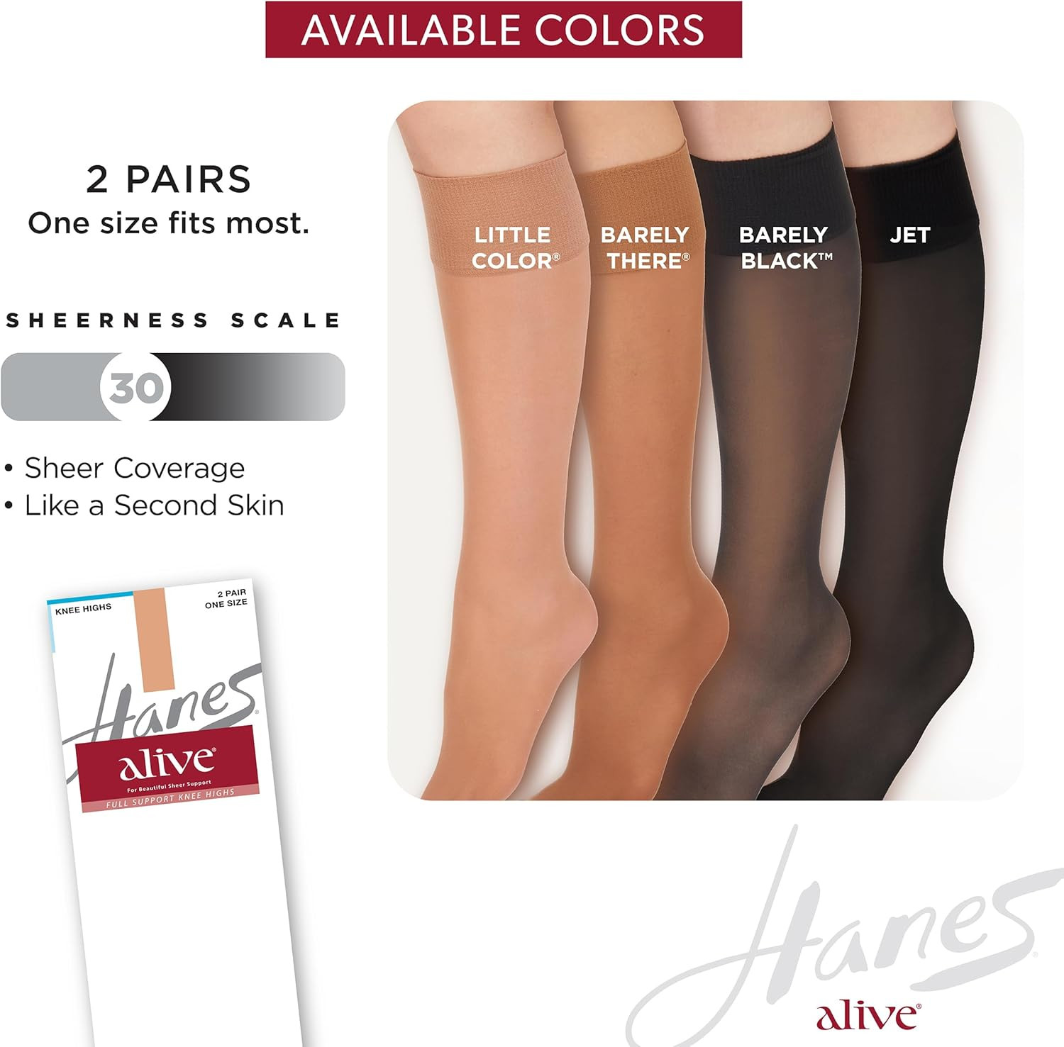 Hanes Alive Women'S Full Support Sheer Toe Knee High Stockings
