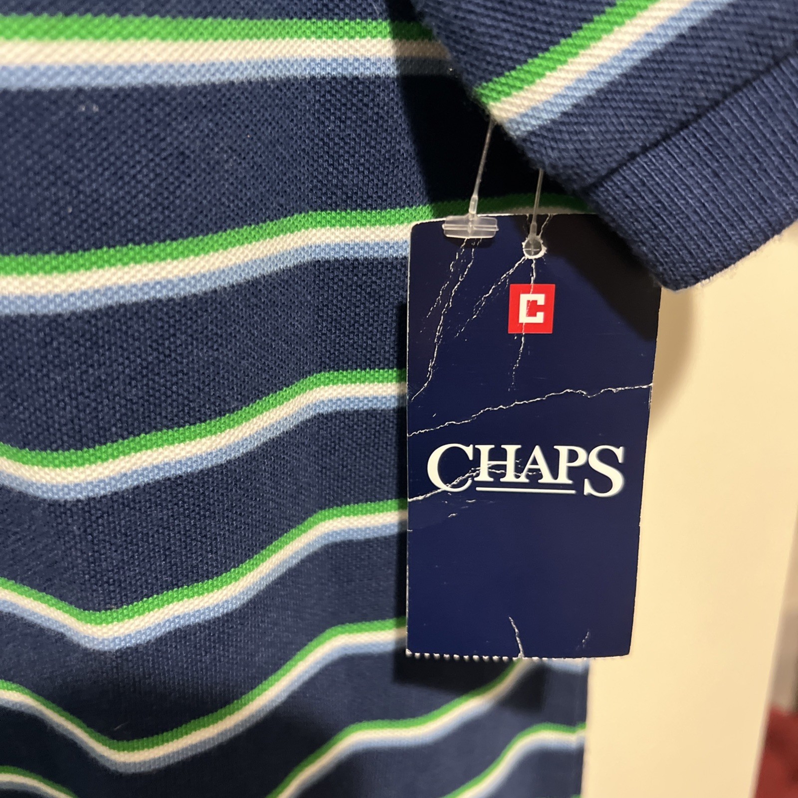 как выглядит Chaps Mens Short Sleeve Polo Shirt Size Small Blue Stripe фото