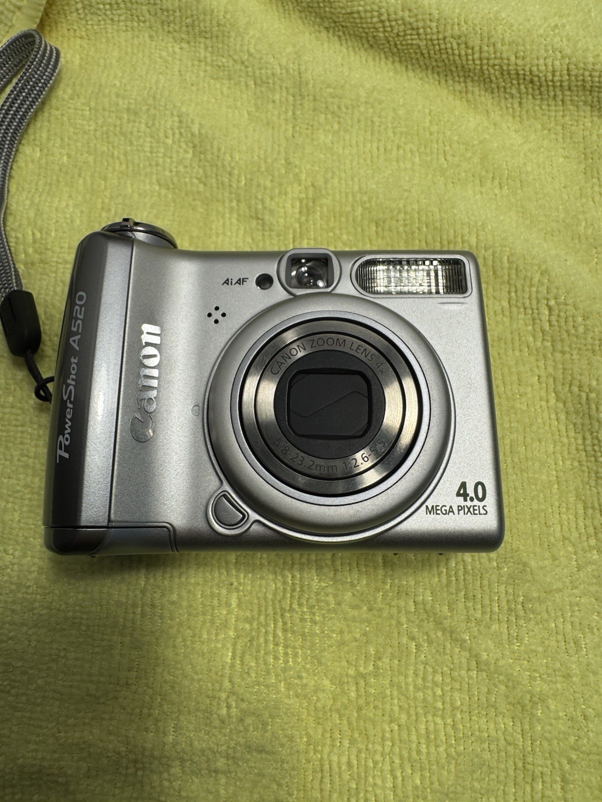 Vintage Canon PowerShot A520 4.0MP Digital Camera Tested Works Silver w/ Case