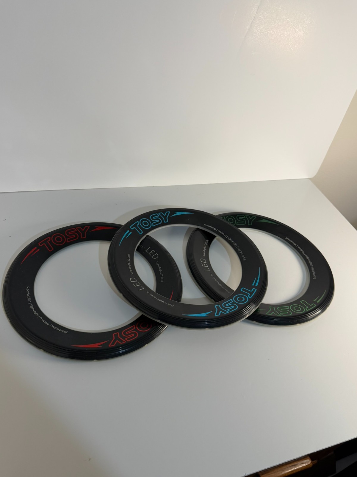 как выглядит TOSY Flying Ring LED Pack of 3 Red Green Blue Super Bright Outdoor Toy фото