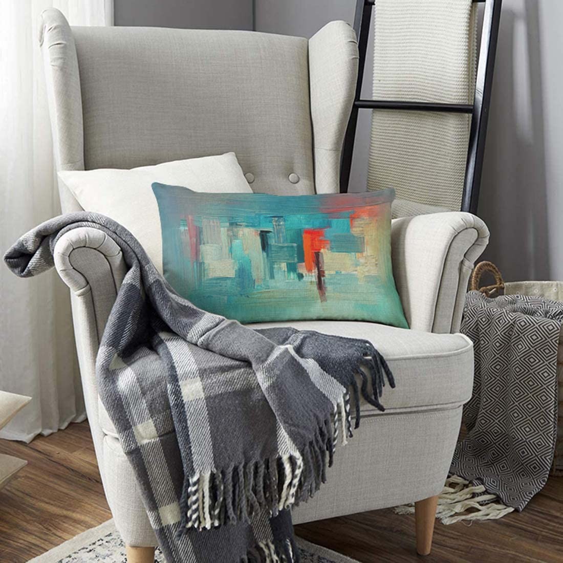 Colour Paint Pillow Cover 12x20 inch Modern Art Made with Teal, Orange Colour...