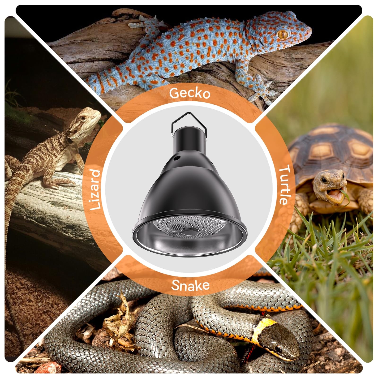 Reptile Light Fixture,7inch Deep Dome Reptile Light Fixture with 3/6/12 Timer...