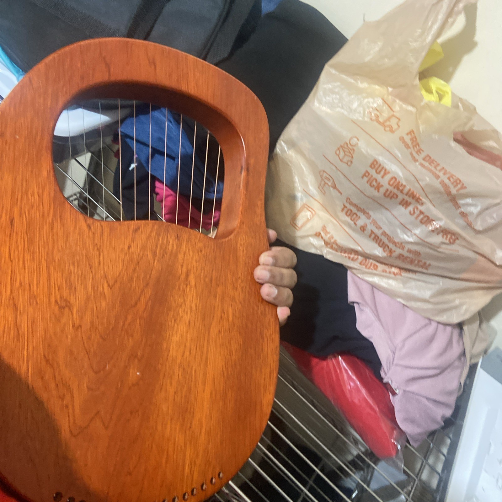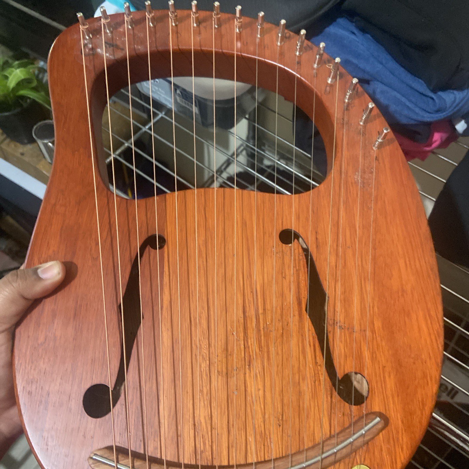как выглядит Lyre Harp Mahogany Wood 16 Metal Strings W/ Carry Bag Tuning Wrench String O3Q5 фото