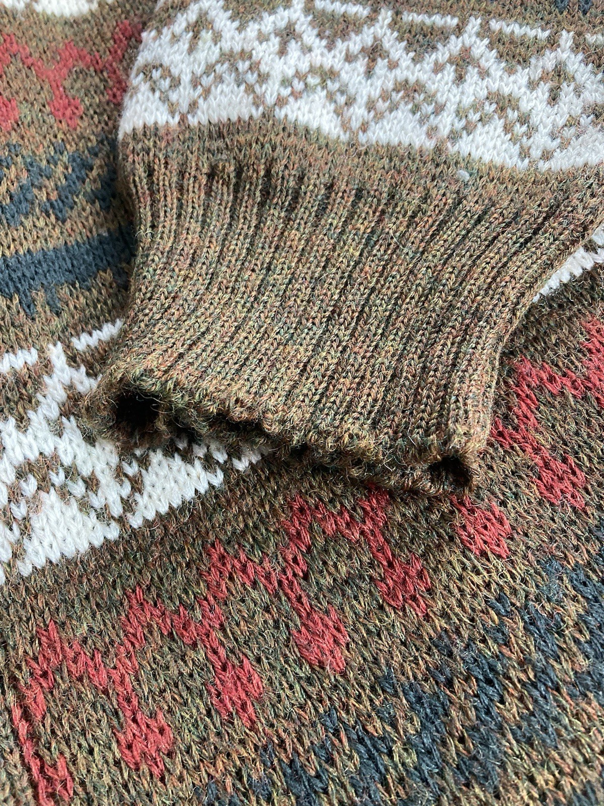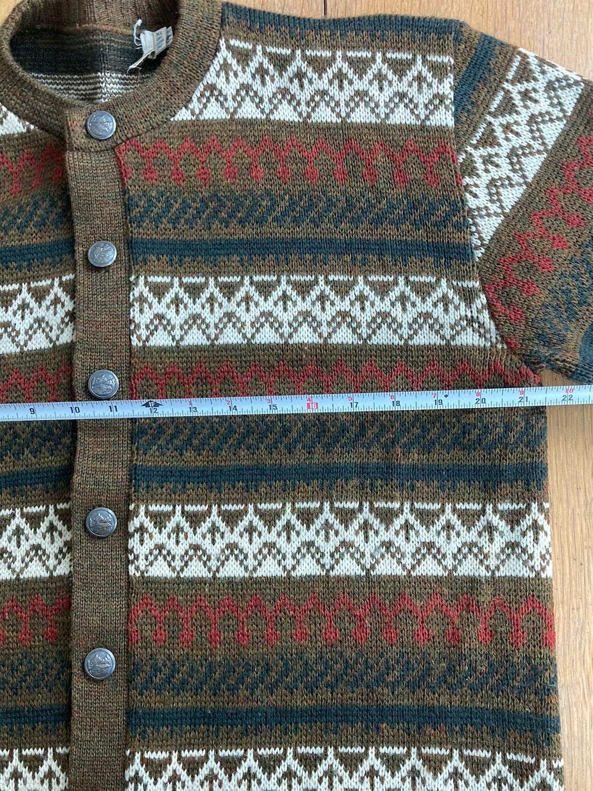 True 1950s Vintage Jersild 100 Wool Nordic Fair isle Cardigan Men s XL USA Made