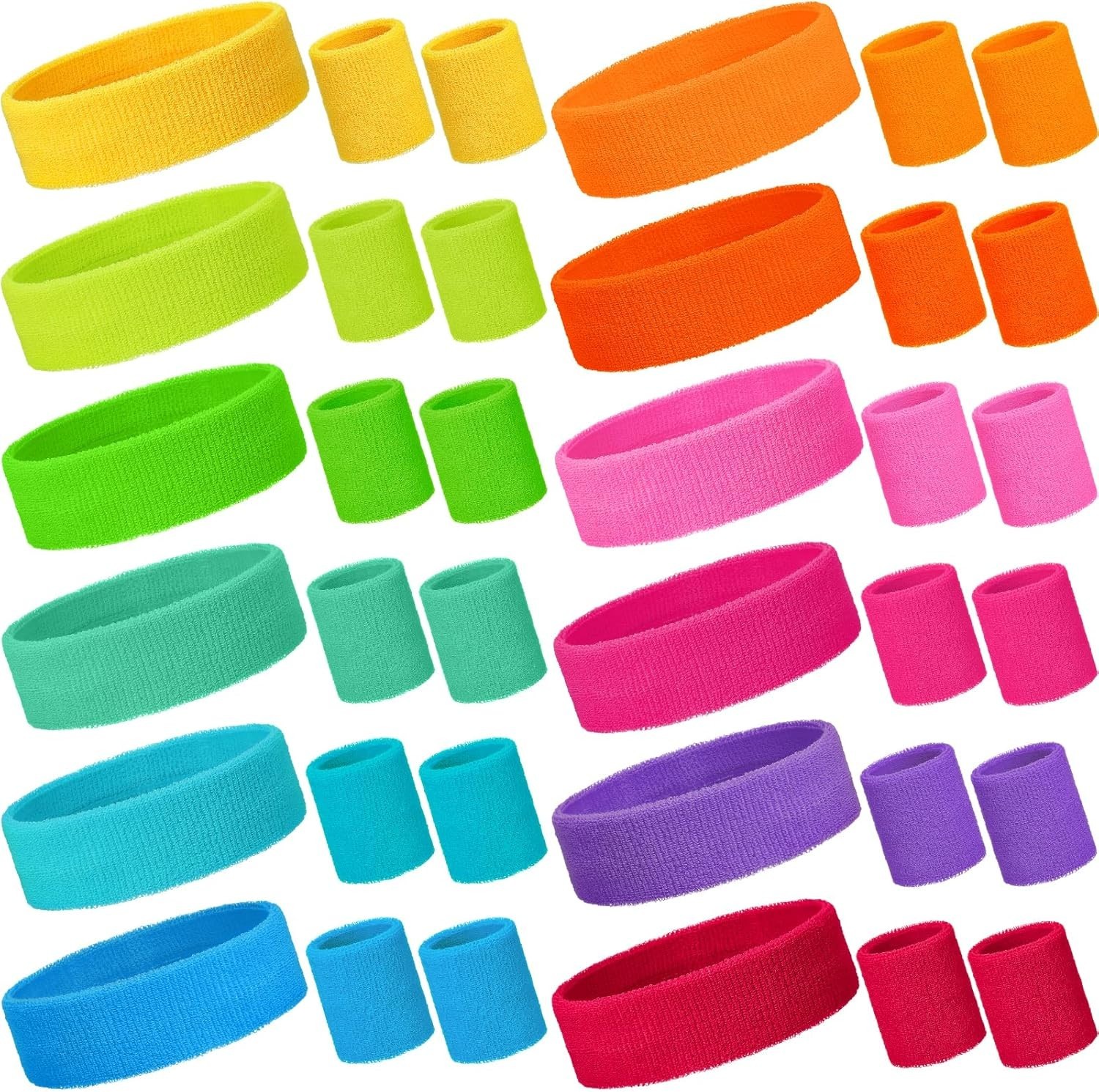36 Pcs Neon Sweatbands Set for Kids 12 Headbands 24 Wristbands Bulk Sports Sw...