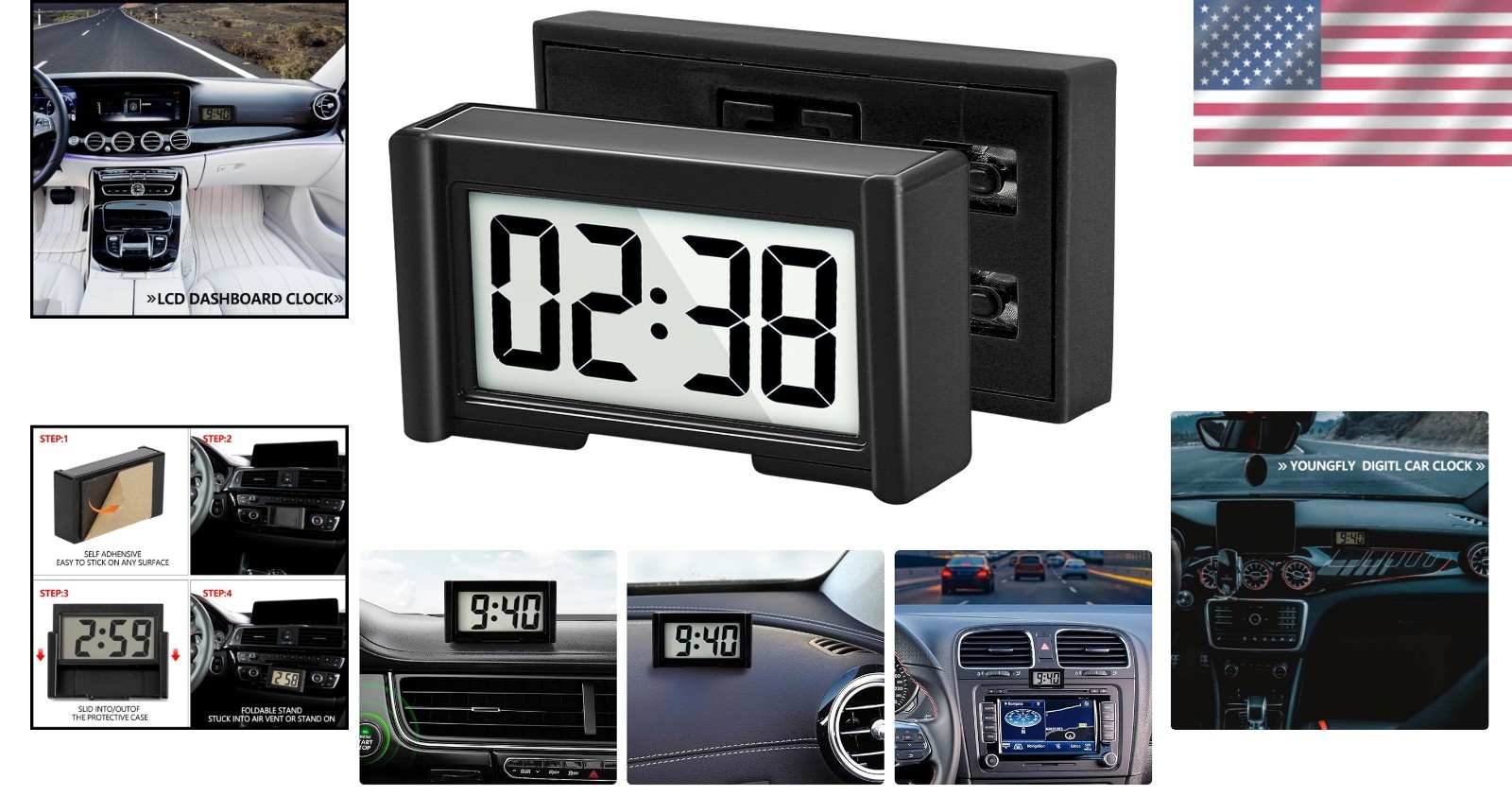 как выглядит Stylish Black Digital Clock for Car Dashboard  Stopwatch Feature Included фото