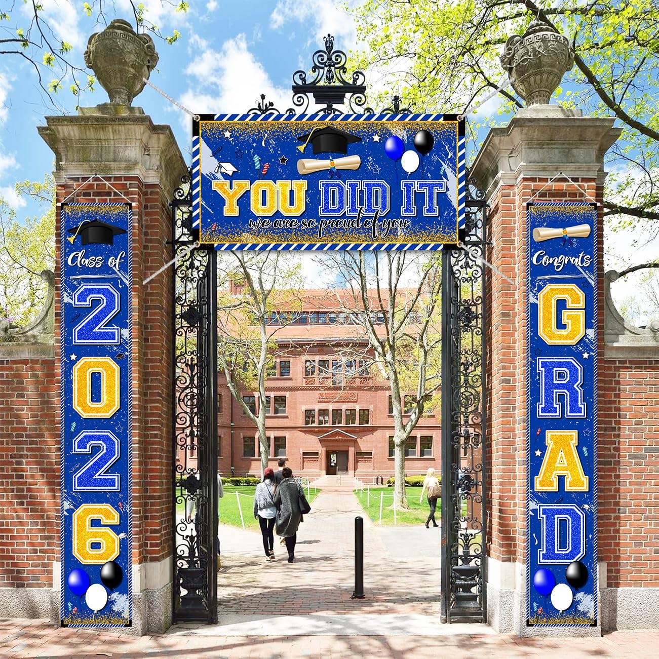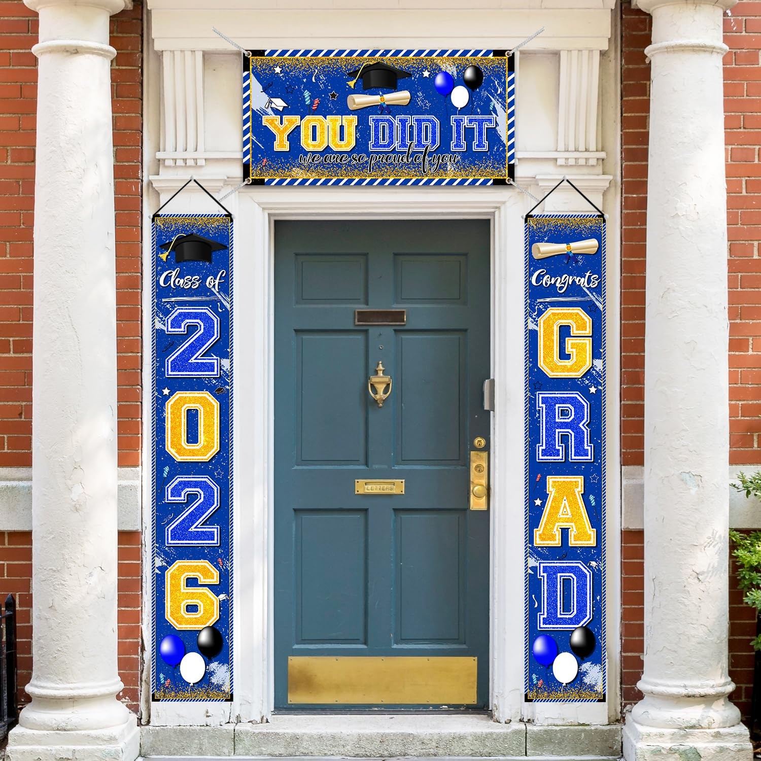 Blue and Gold Graduation Decorations Class of 2026 Banner