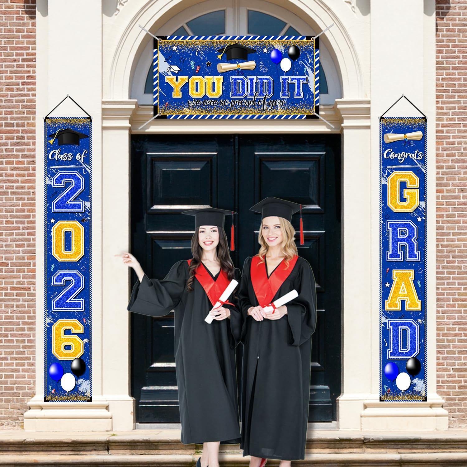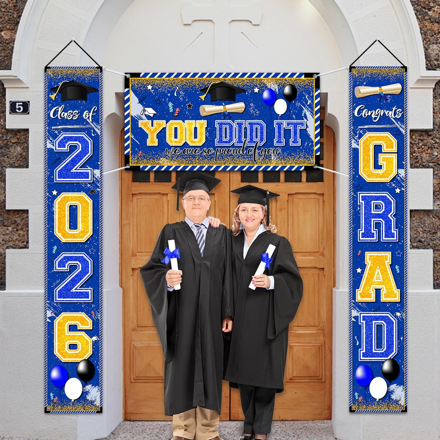 как выглядит Blue and Gold Graduation Decorations Class of 2026 Banner фото
