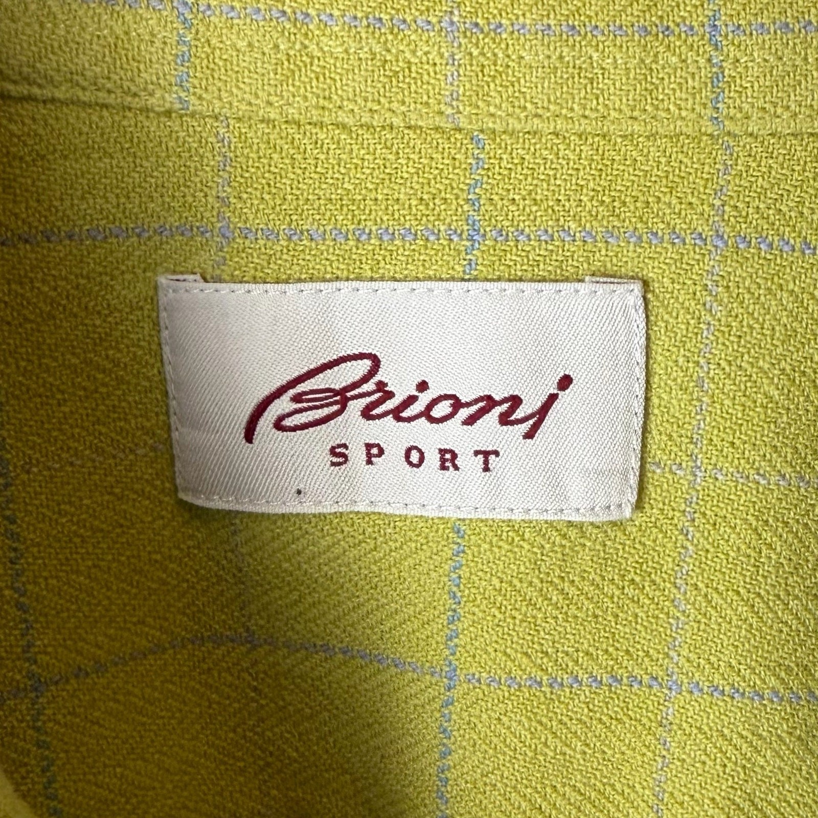 Brioni Sport Linen Cotton Windowpane Shirt Italy Green Button Down M Italy READ