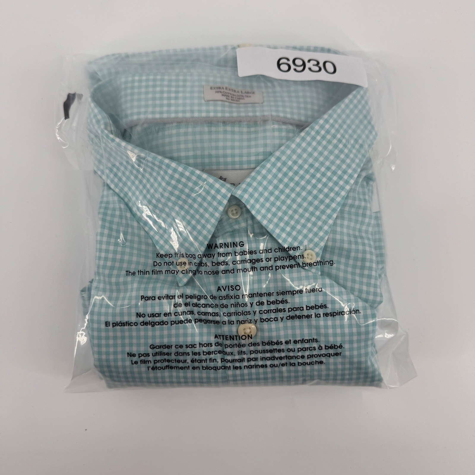Peter Millar Crown Soft Men's 2XL Blue Gingham Check Button Down Dress Shirt