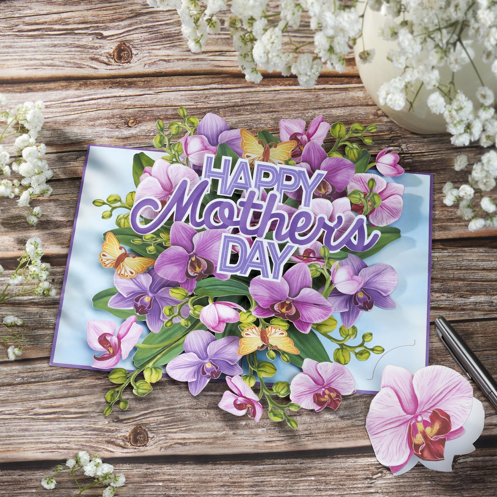 Mothers Day Pop Up Cards, Happy Mother's day, Orchid, Butterfly, 3D Greeting