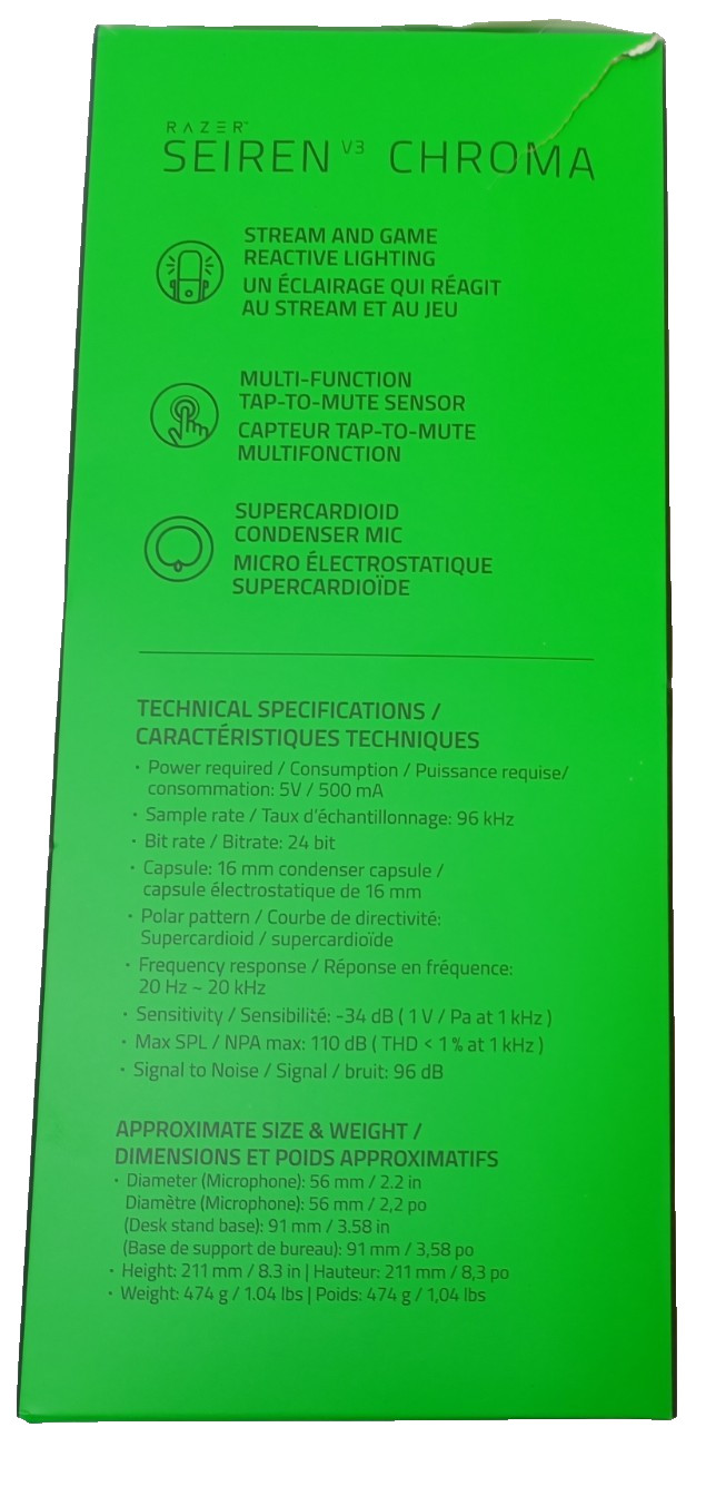 Razer Seiren V3 Chroma RGB USB Retractable Microphone Super cardioid Condenser