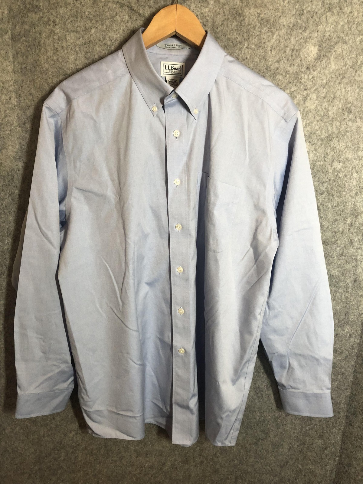 как выглядит L.L.Bean Shirt Mens 15.5-33 Blue Solid Wrinkle Free Traditional Fit Long Sleeve фото