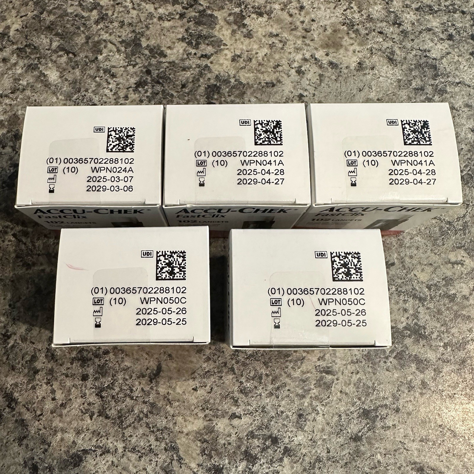 SEALED Lot Of 5 Accu-Chek FastClix Lancets 102 Each / 510 Diabetes X 2029