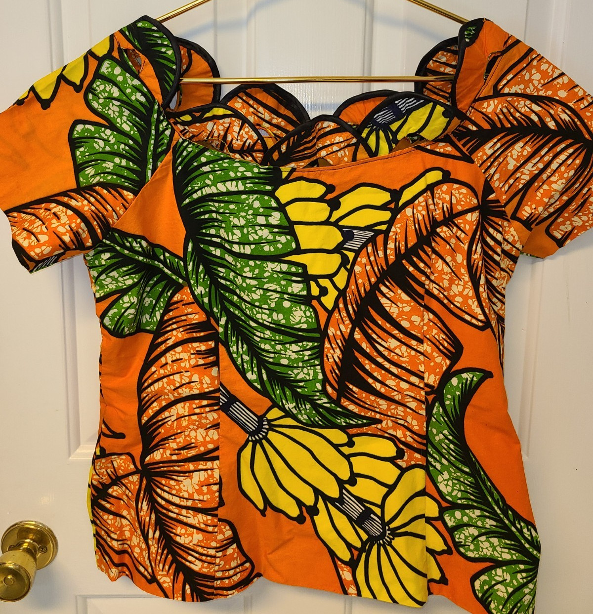 Women s Homemade African Floral Ankara Print Off The Shoulder Scallop Neck Top