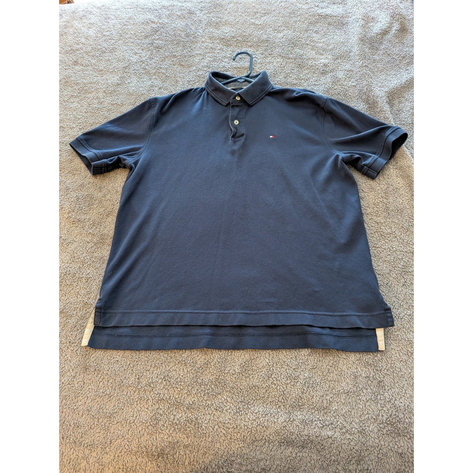 как выглядит Tommy Hilfiger Mens Navy Blue Short Sleeve Pique Polo Shirt Large L/G фото