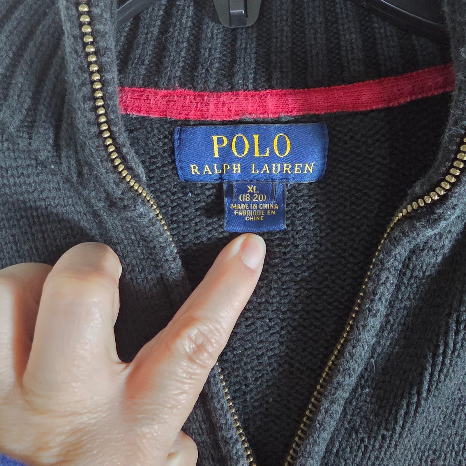 как выглядит Polo Ralph Lauren Quarter Zip Sweater Black Cotton Knit Boys XL Classic, Preppy фото