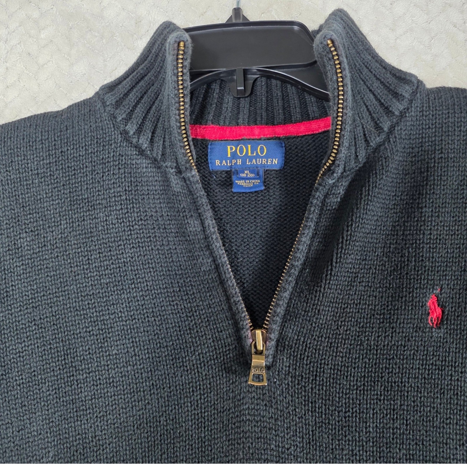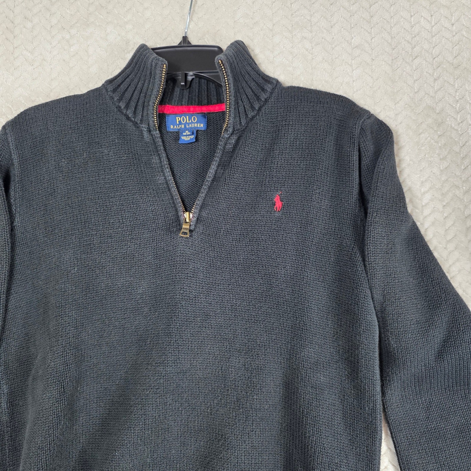 Polo Ralph Lauren Quarter Zip Sweater Black Cotton Knit Boys XL Classic, Preppy