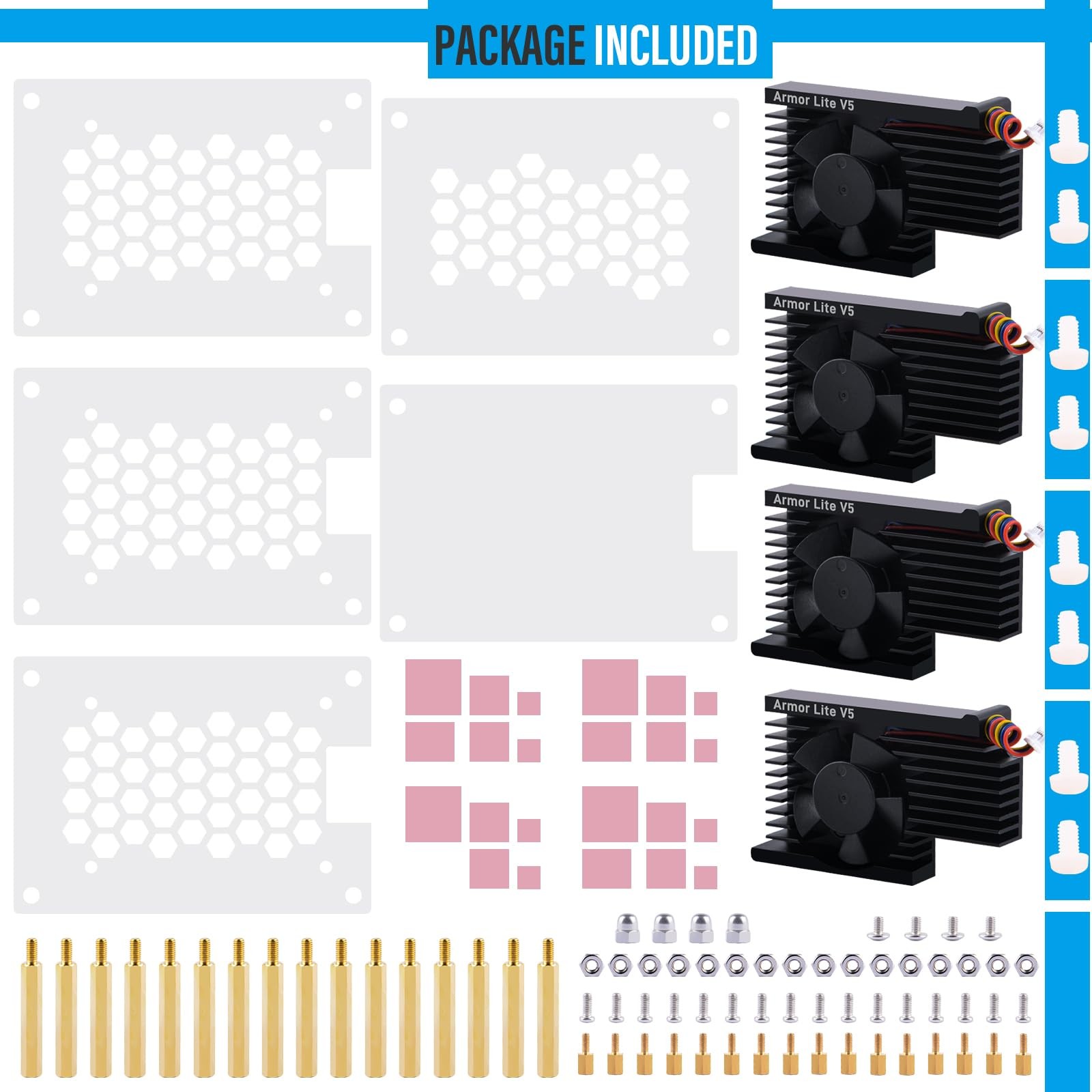 4 Layers Cluster Case for Raspberry Pi 5, Pi 5 Stackable Case with 4PCS Armor...