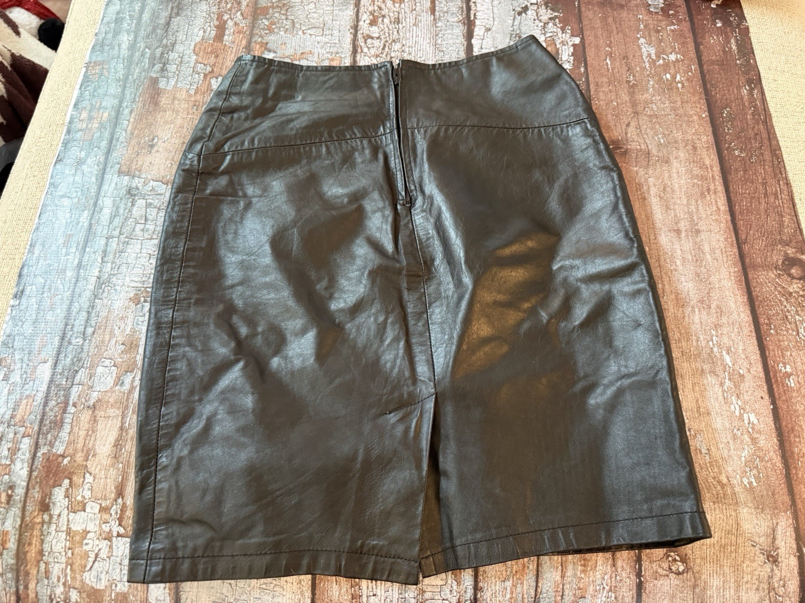 как выглядит Vtg Limited Express International Collection Black Leather Mini Skirt W Lining фото