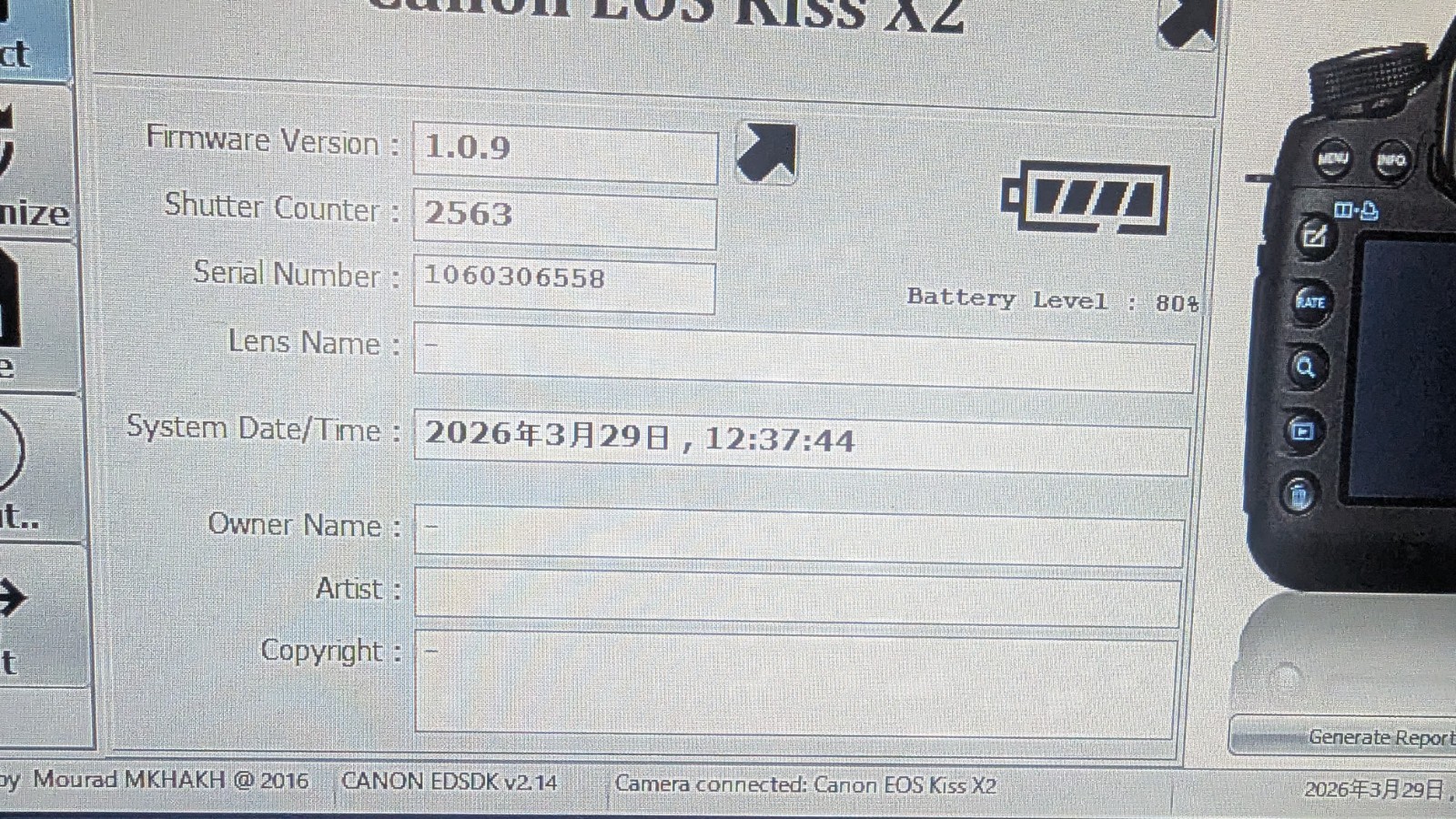 Canon EOS Rebel XSi 450D Kiss X2 Low Shutter Count 2,563 Tested Works from Japan